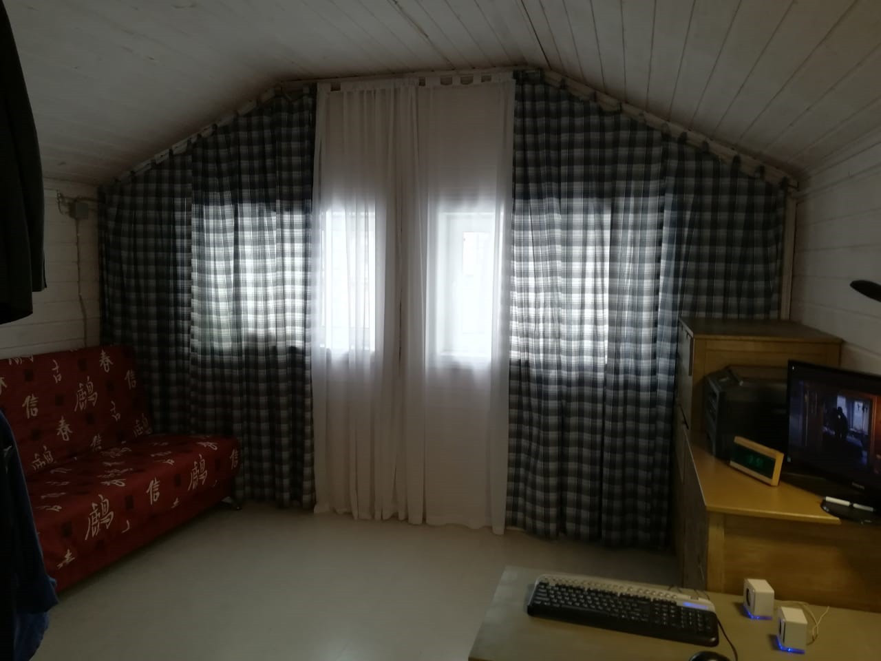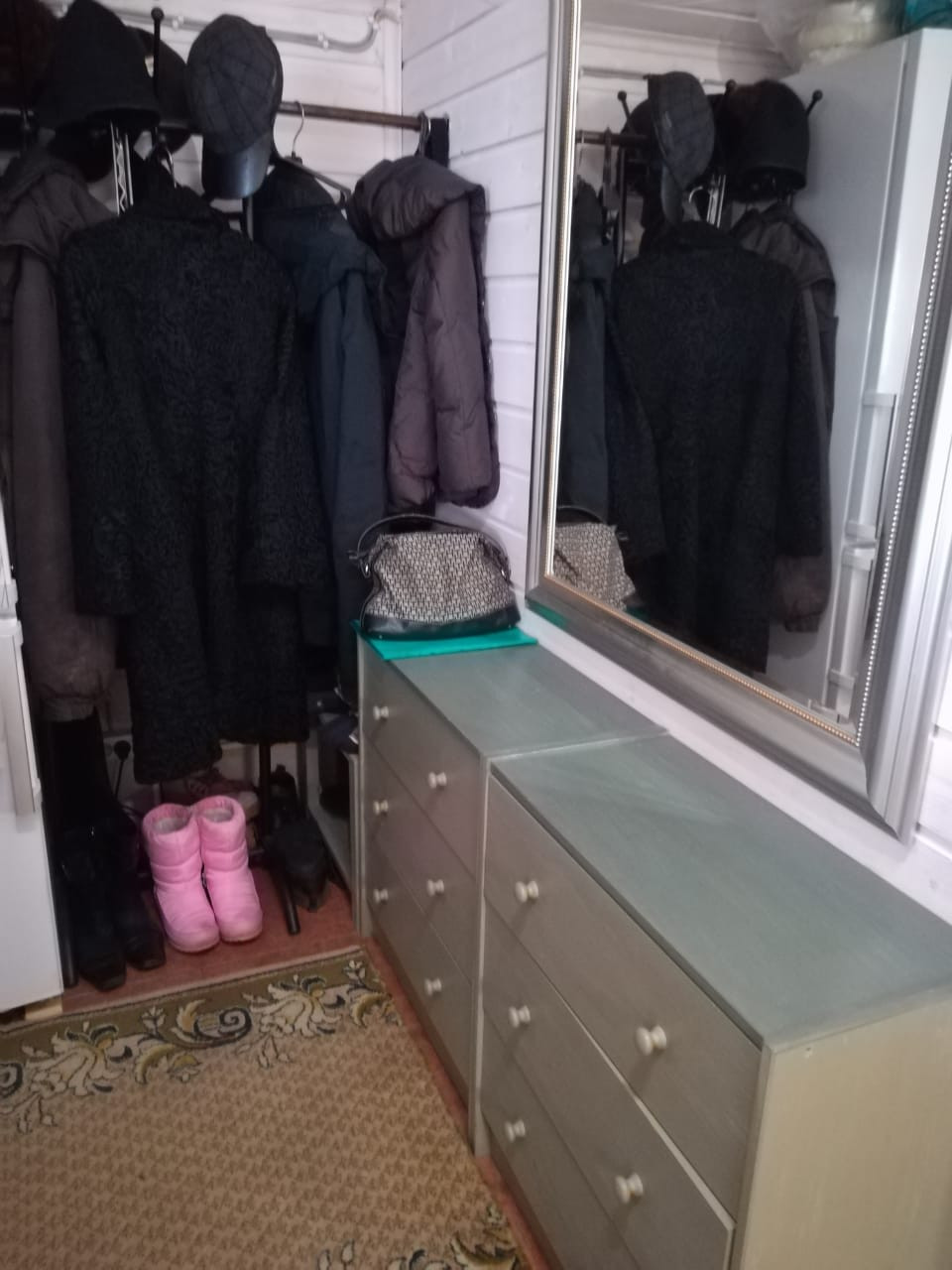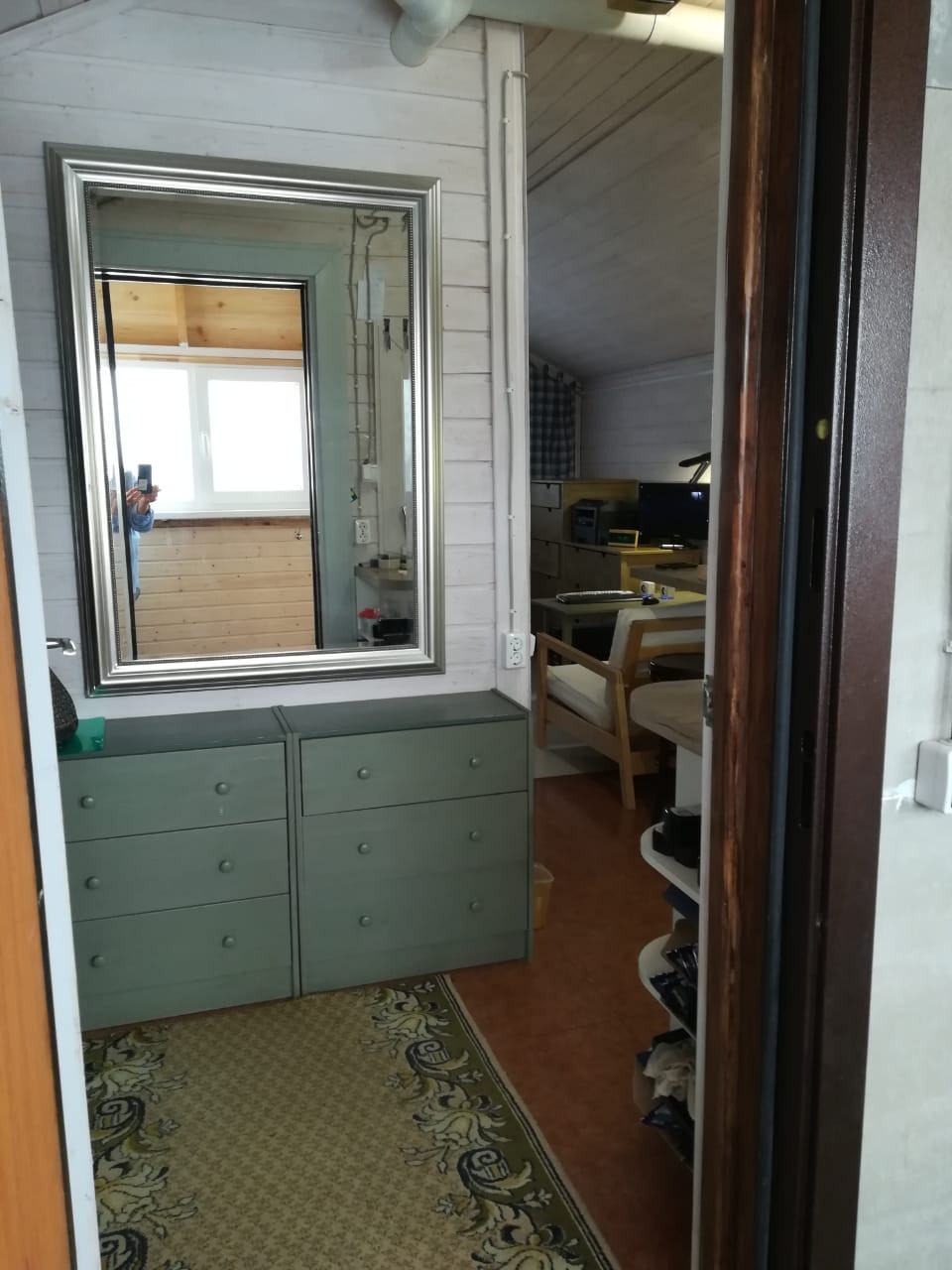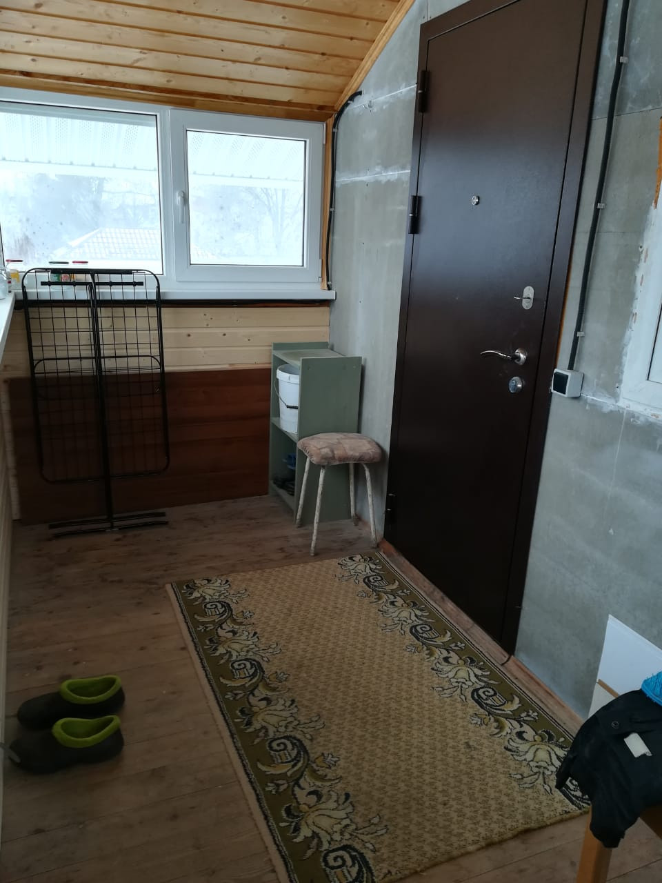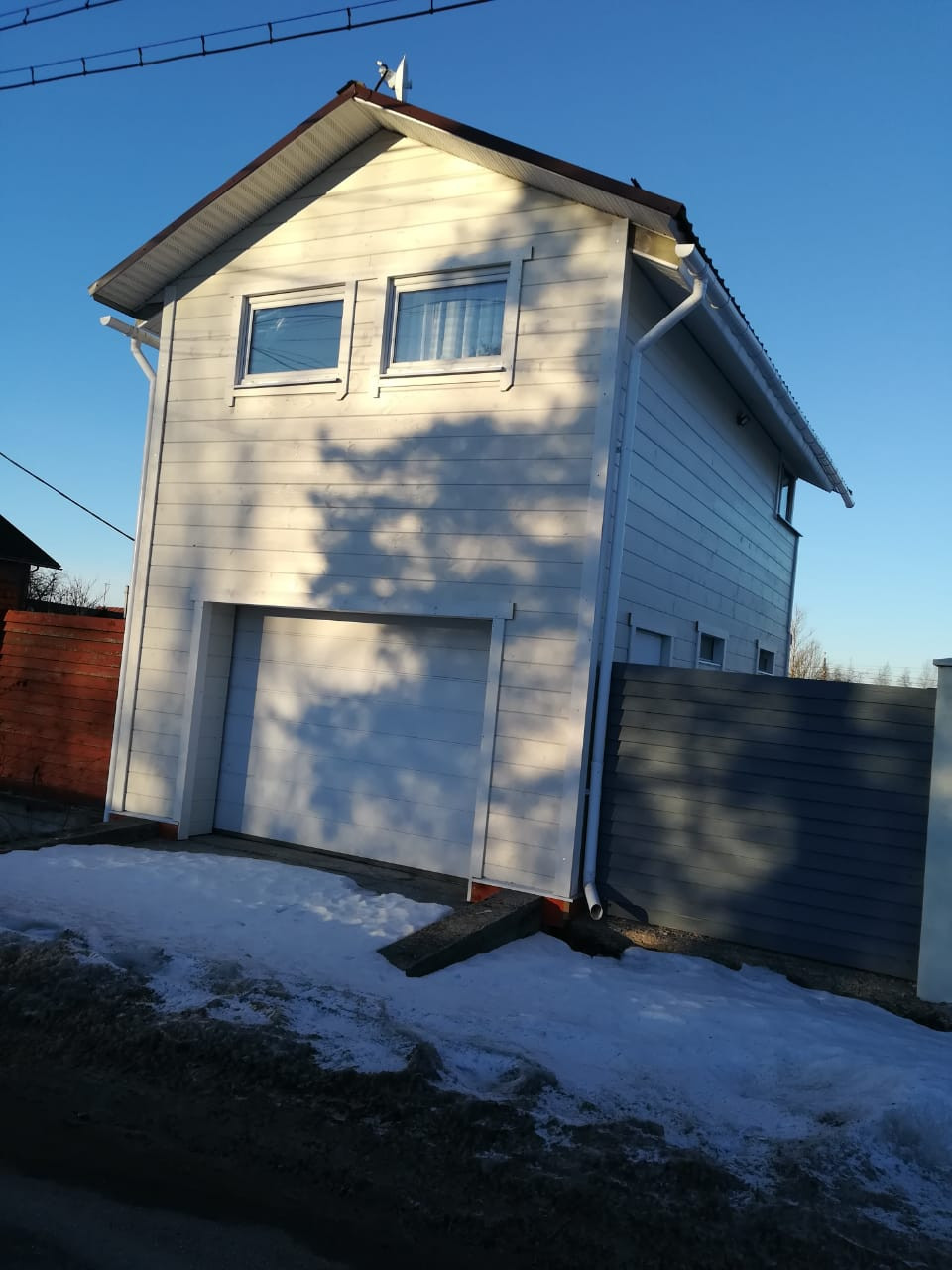 На первом этаже теплый гараж 4х8 для автомобиля, на втором - студия 28 метров и застекленная веранда.