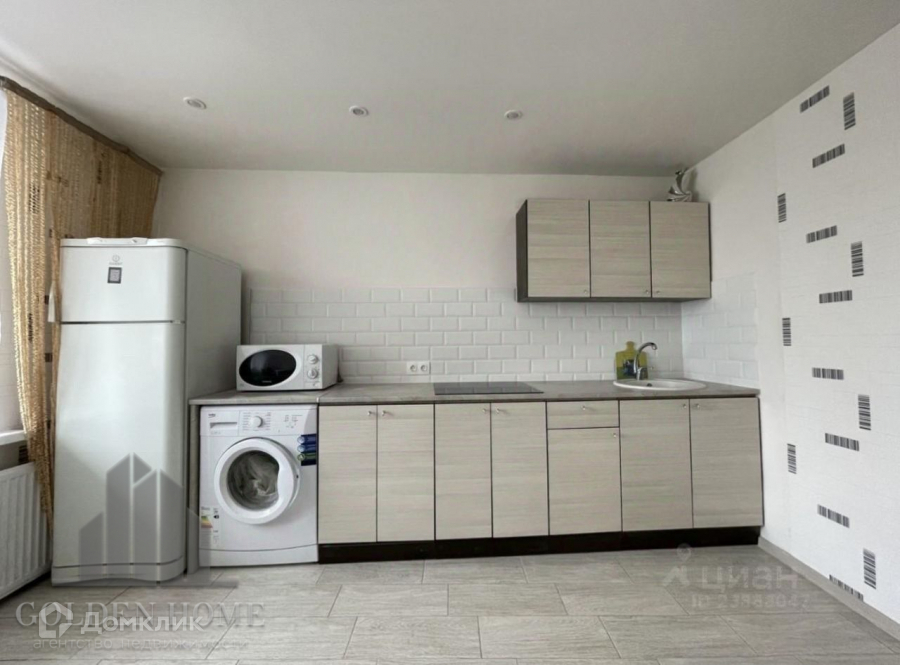 Полностью меблирована и технически оснащена. В комнате удобная кровать, вместительный шкаф, телевизор. На кухне стол со стульями, стиральная машина, холодильник, плита, кухонный гарнитур, СВЧ, чайник, посуда.