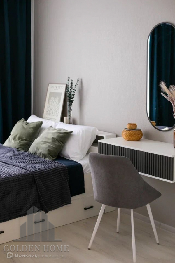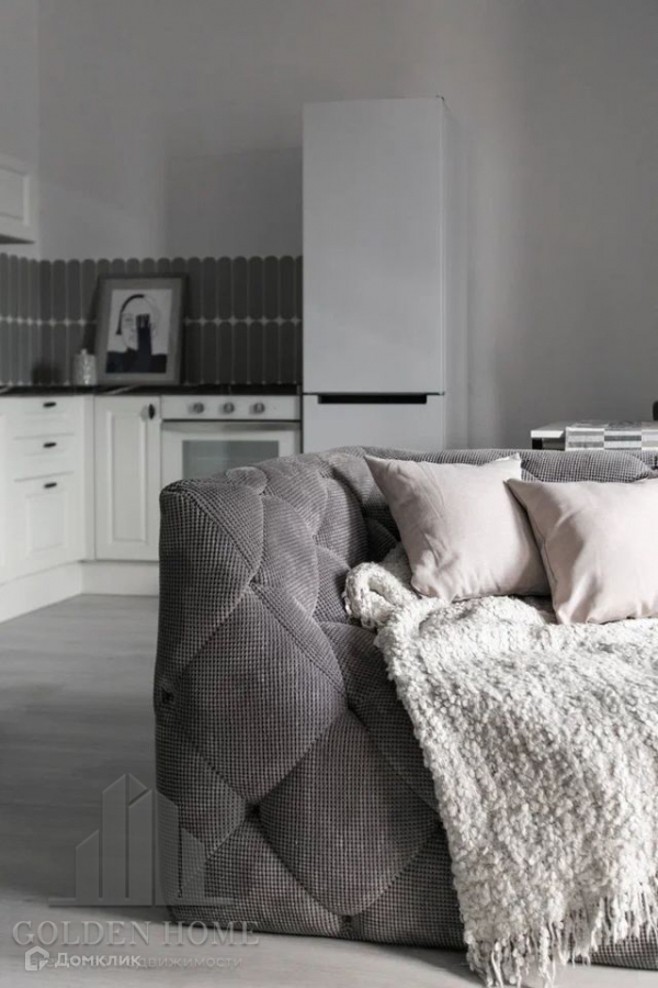 Благодаря грамотной планировке, квартира очень комфортная и удобная.  Большая современная квадратная гостиная с зоной кухни и отдыха. Спальня. И третья - комната с рабочим столом и кроватью.