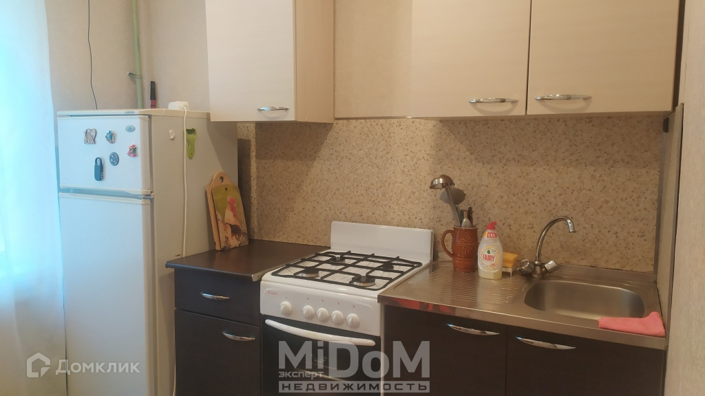 В квартире есть кухонная мебель, холодильник, стиральная машина.