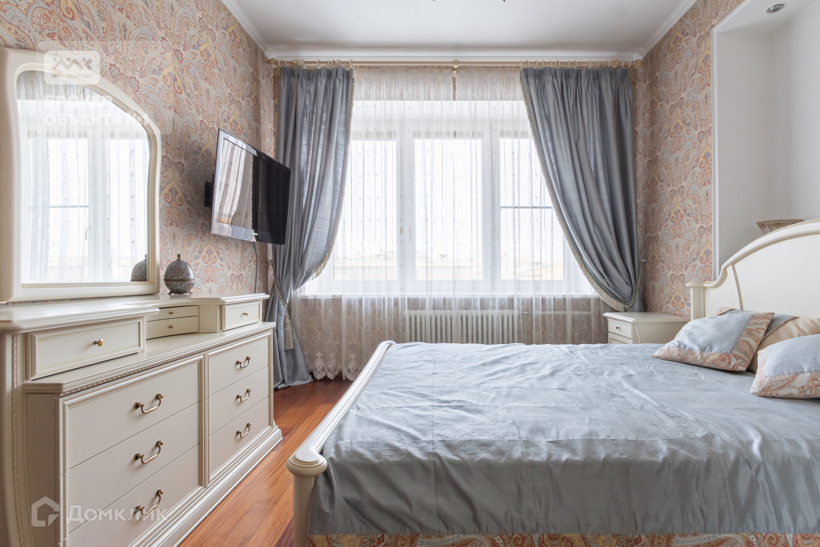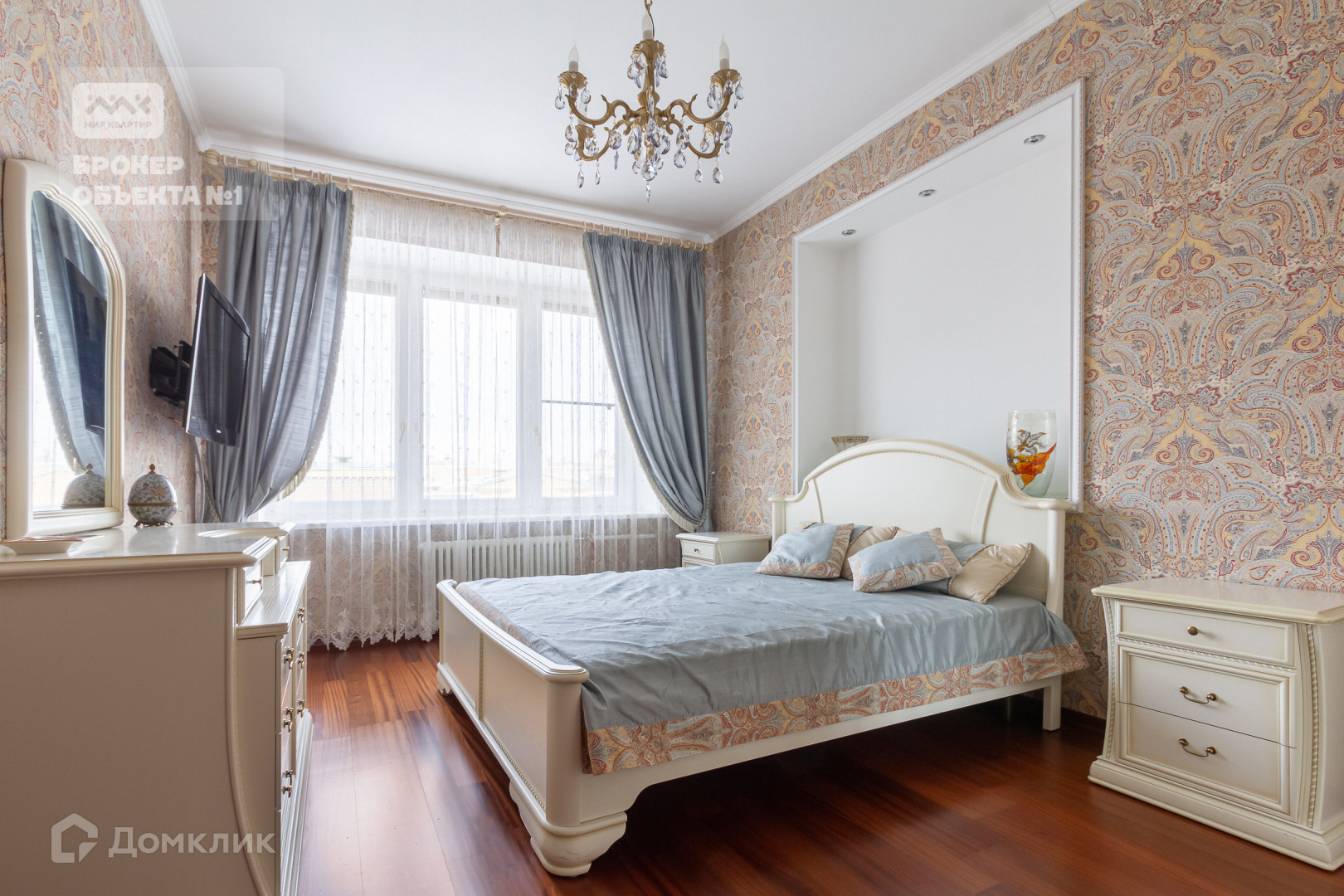 Четырехкомнатная уютная квартира на 8-ом этаже. Планировка квартиры очень просторная. Три изолированных комнаты. Основная спальня, детская комната, пустая комната свободного назначения, гостиная с большой гардеробной и изолированная кухня, окна обращены в три стороны. В гостиной установлен кондиционер, имеется современный фильтр для очистки воды. Теплые полы. Трехкамерные стеклопакеты с системой микропроветривания.