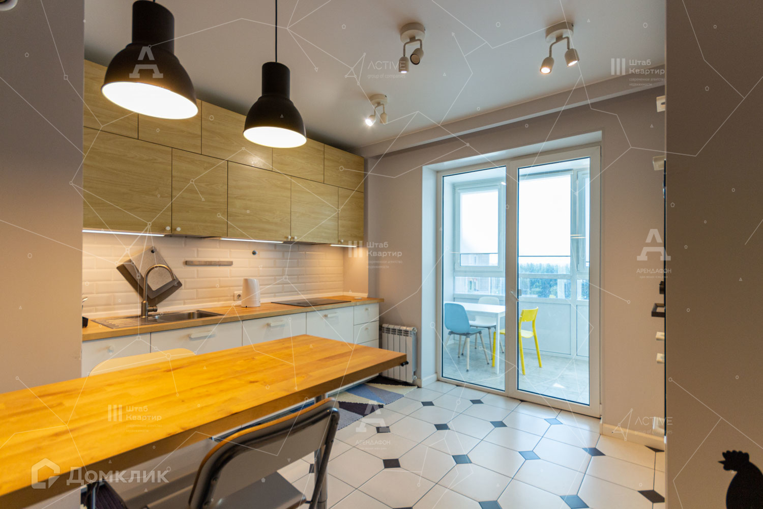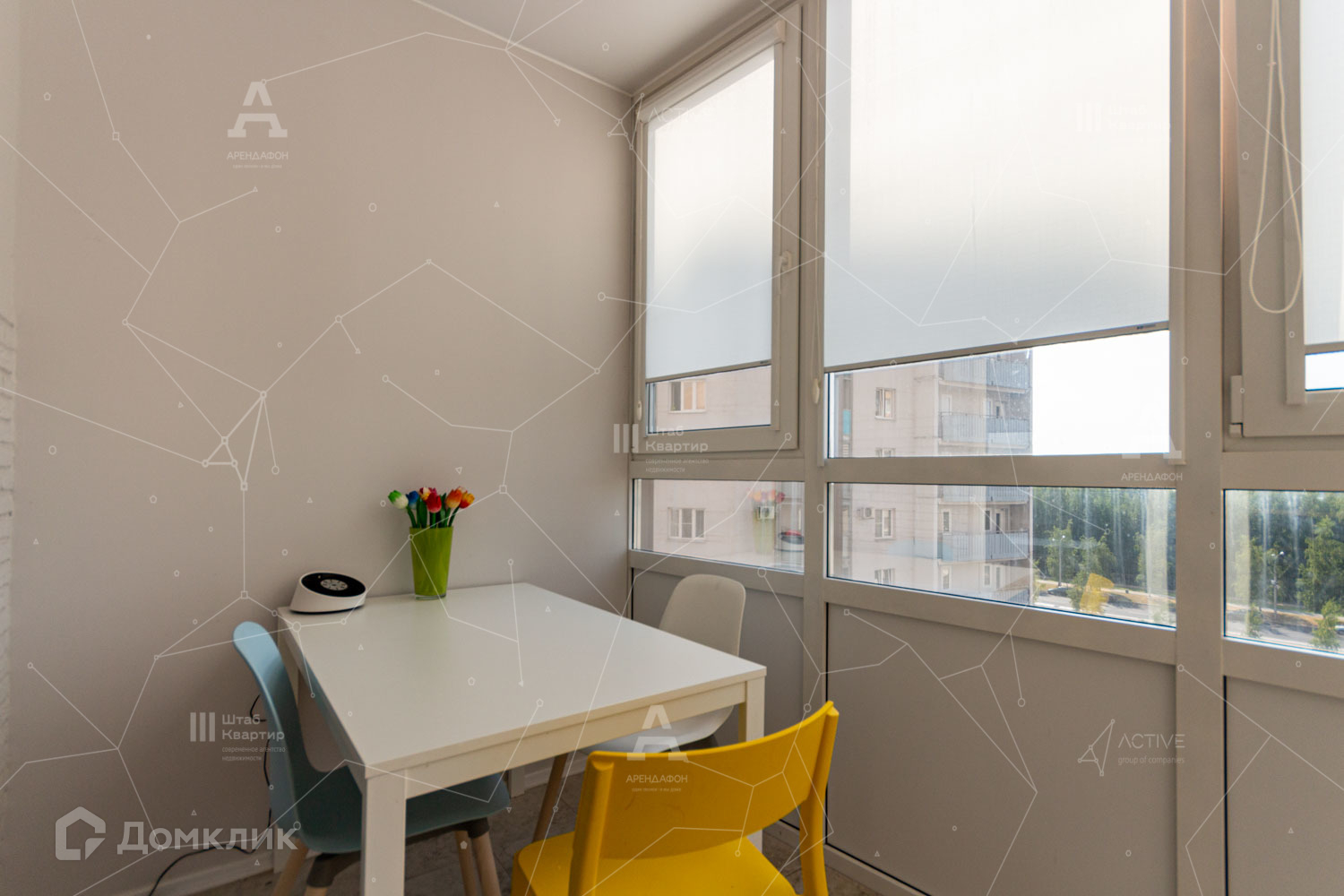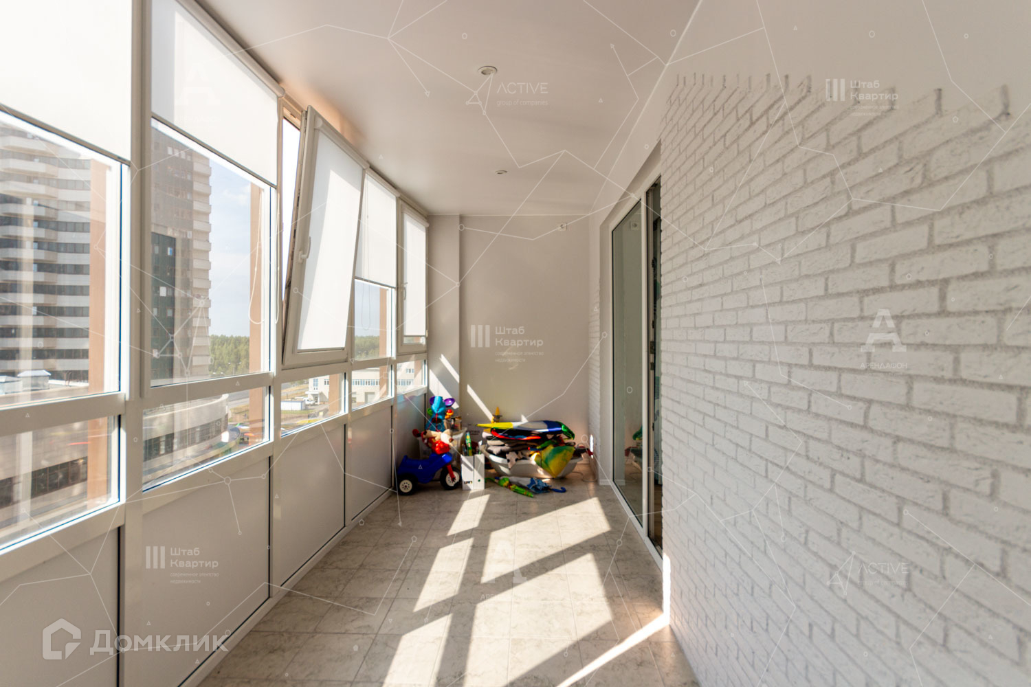 Квартира оснащена огромным тёплым балконом с видом на воду и лес.