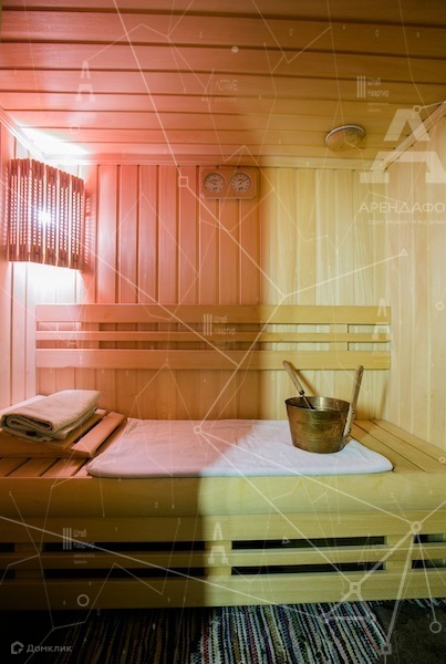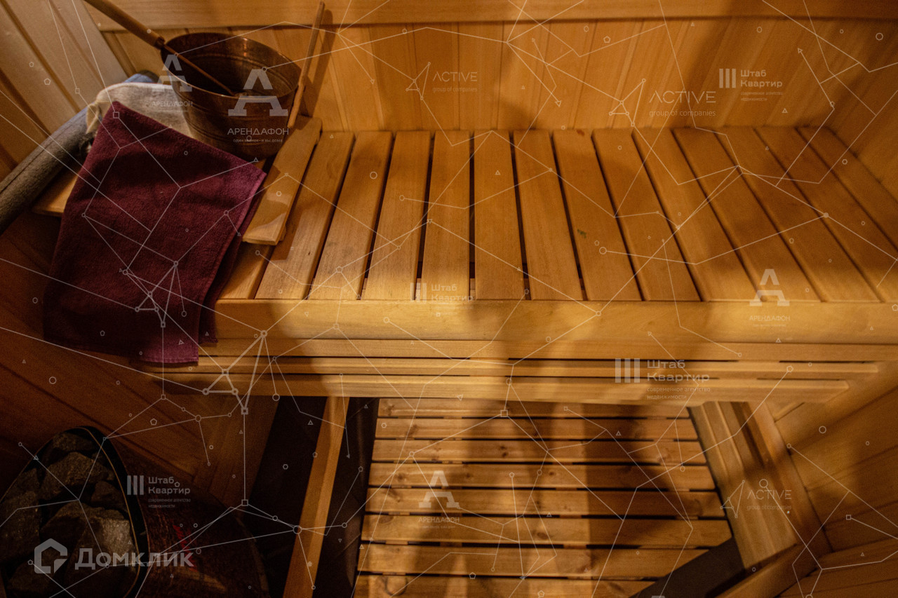 Кухня-гостиная + спальня+спальня+детская. Два санузла, сауна.