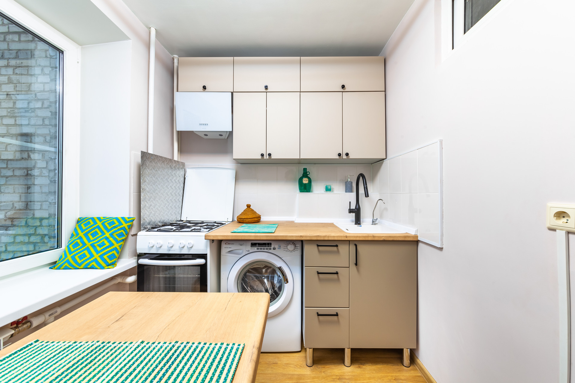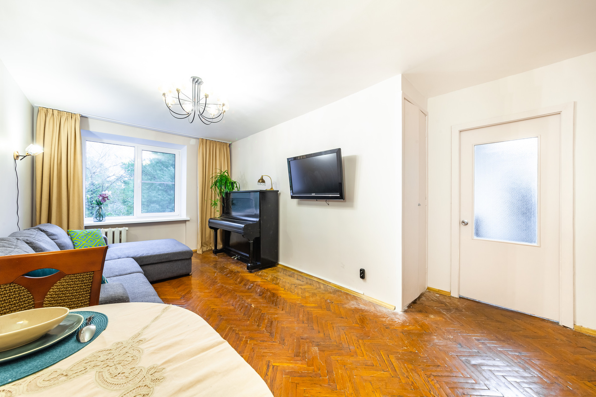 Очень чистая,стильная ,  с видом на кроны деревьев... квартира.