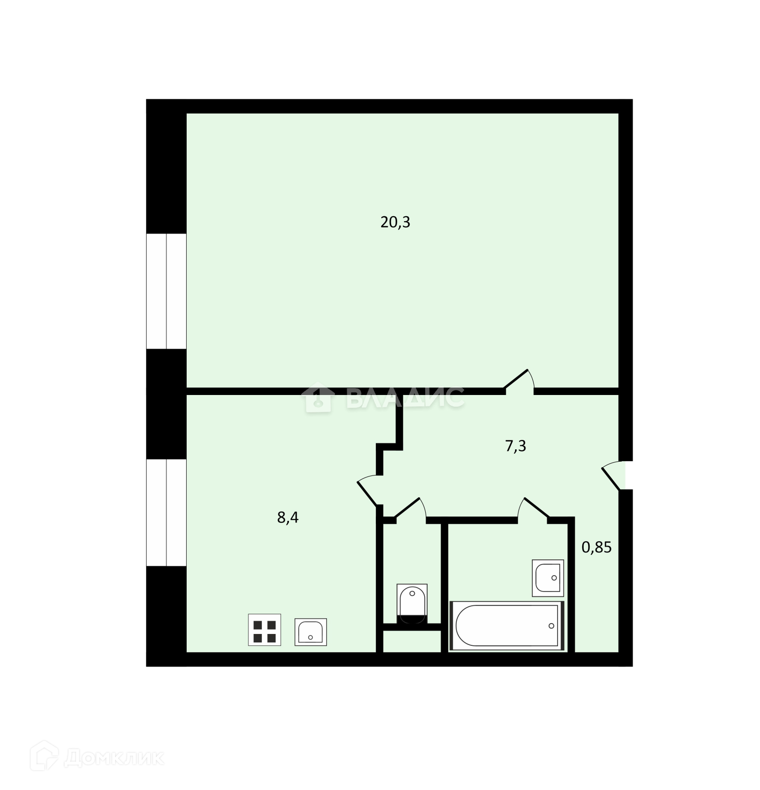 Жилая площадь 20.3 м2