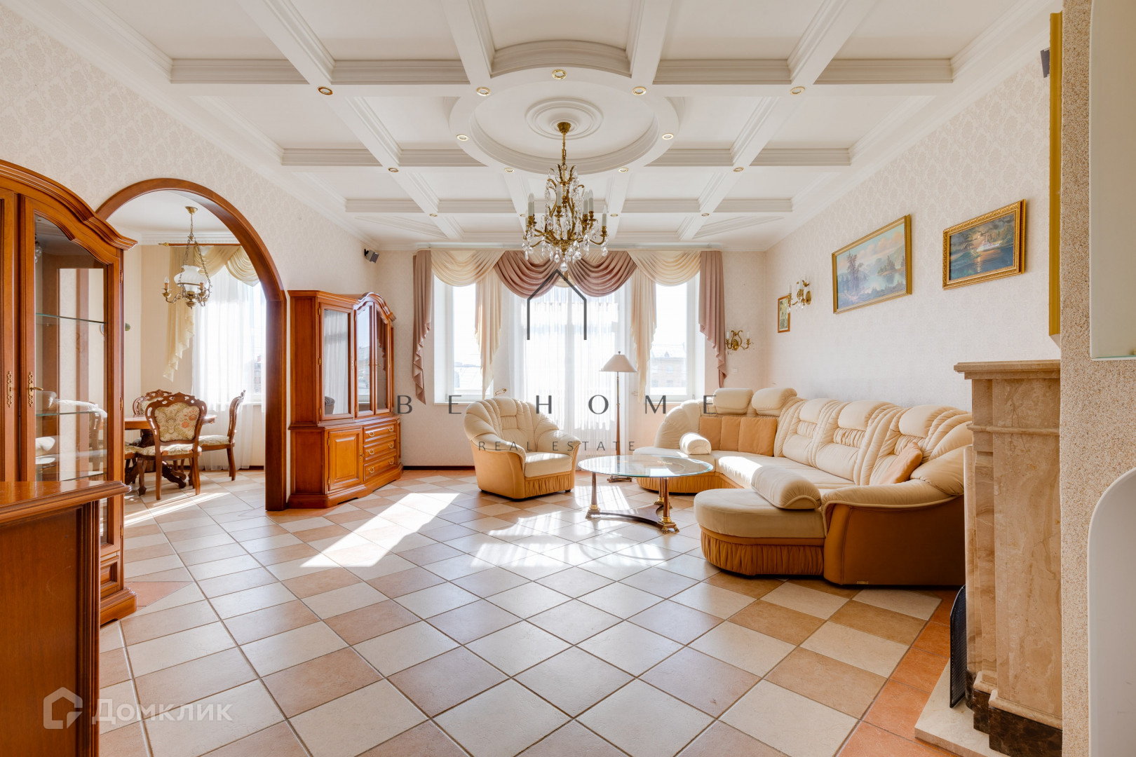 Три изолированные спальни. Три санузла. Большая гостиная, совмещённая с кухней. Сауна. И действующий камин.
