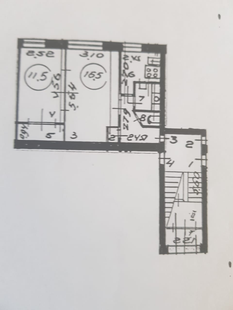 Площади комнат - 16,5 и 11,5 кв.м.,