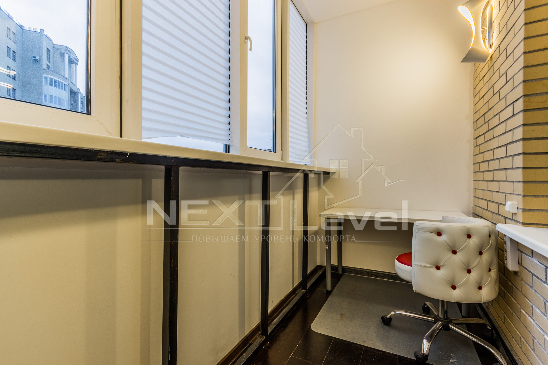 По планировке состоит из: Прихожей с большим шкафом купе в потолок, совмещенного санузла, гостиной с выделенной кухонной и спальной зоной и тёплой лоджии с рабочим местом.