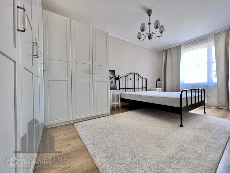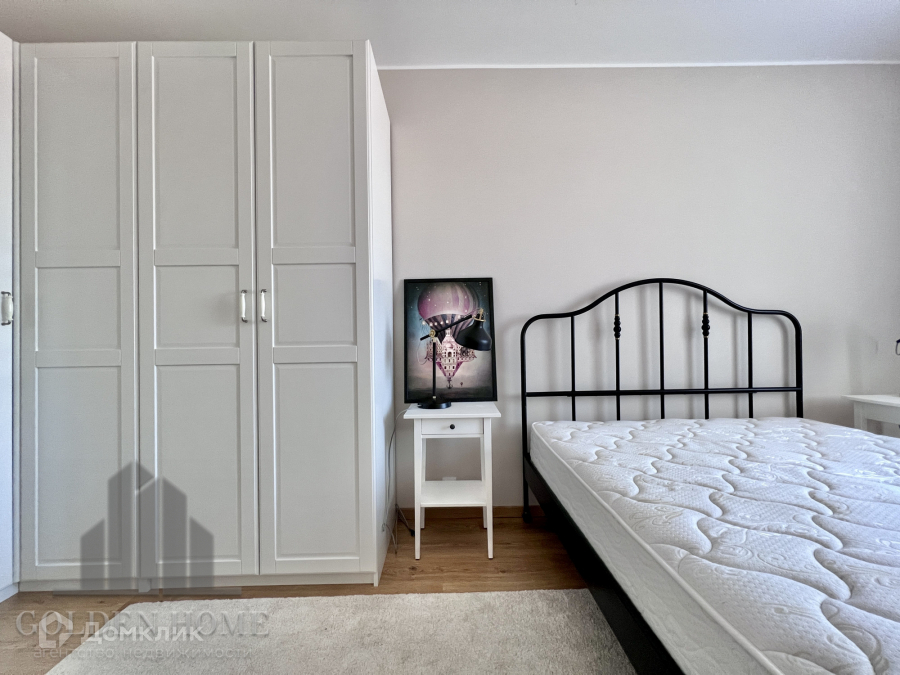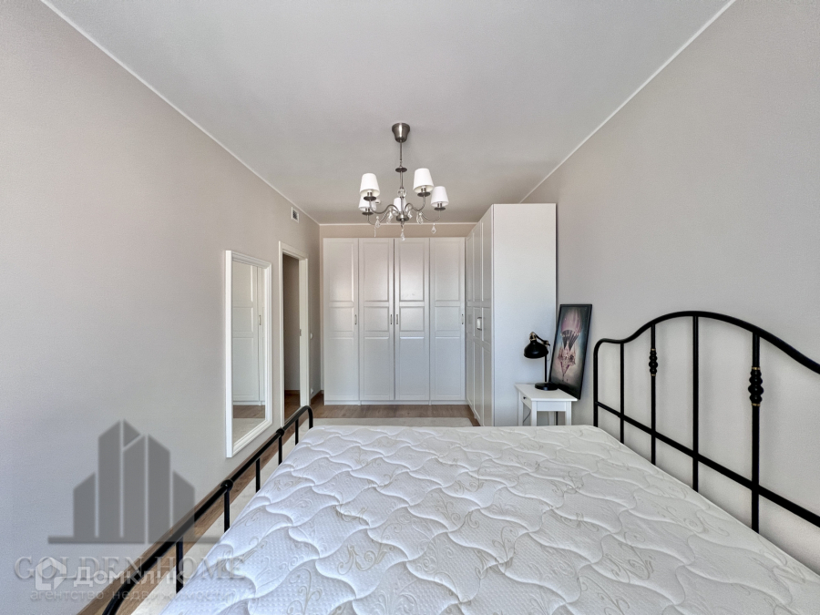 Двуспальная кровать с ортопедическим матрасом, огромный гардеробный шкаф.