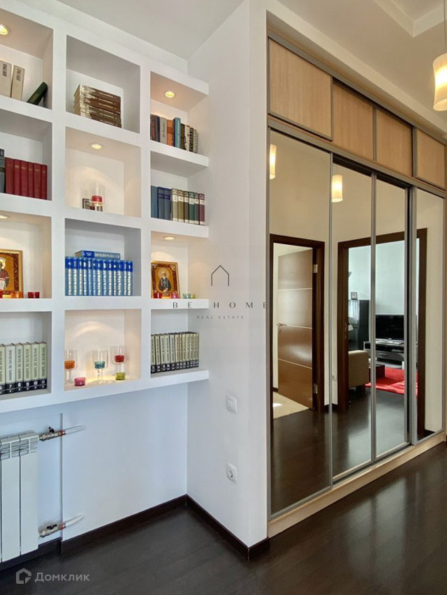 Планировка: оборудованная всей необходимой современной техникой кухня с обеденной зоной, совмещенная с гостиной, вторая изолированная гостиная с большой библиотекой, спальня, ванная комната.