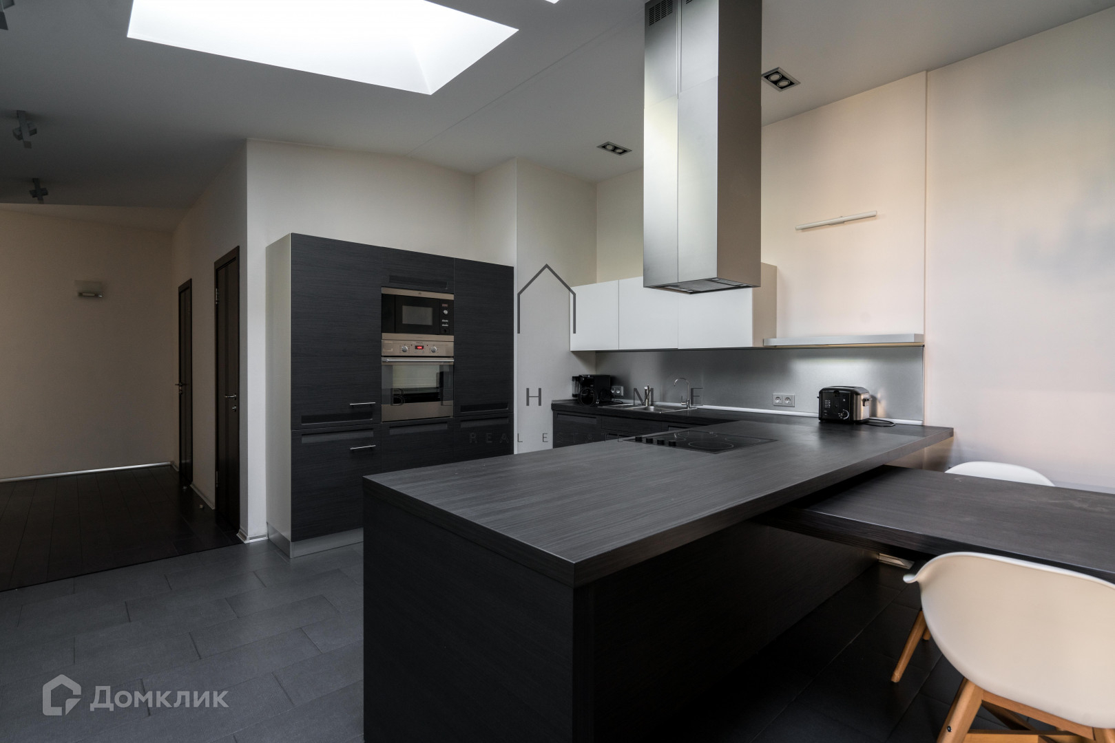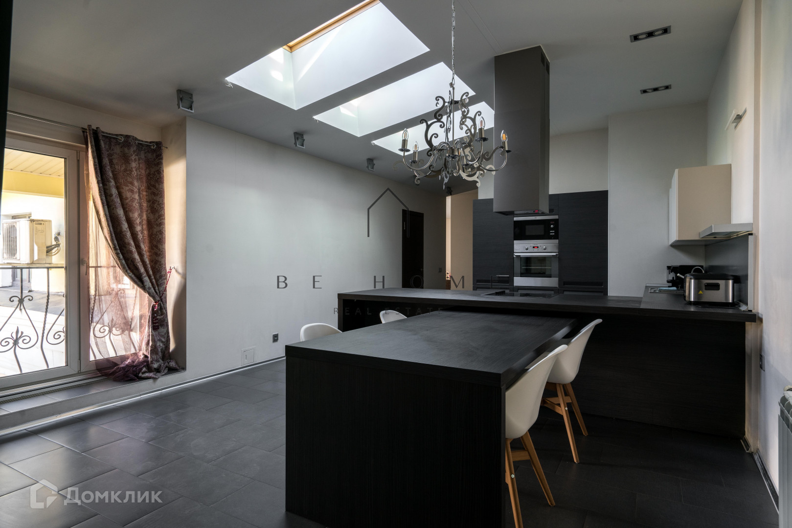 Планировка с тремя спальнями, гостиной, кухней-столовой, двумя ванными комнатами и гостевым туалетом. В квартире панорамные и мансардные окна.