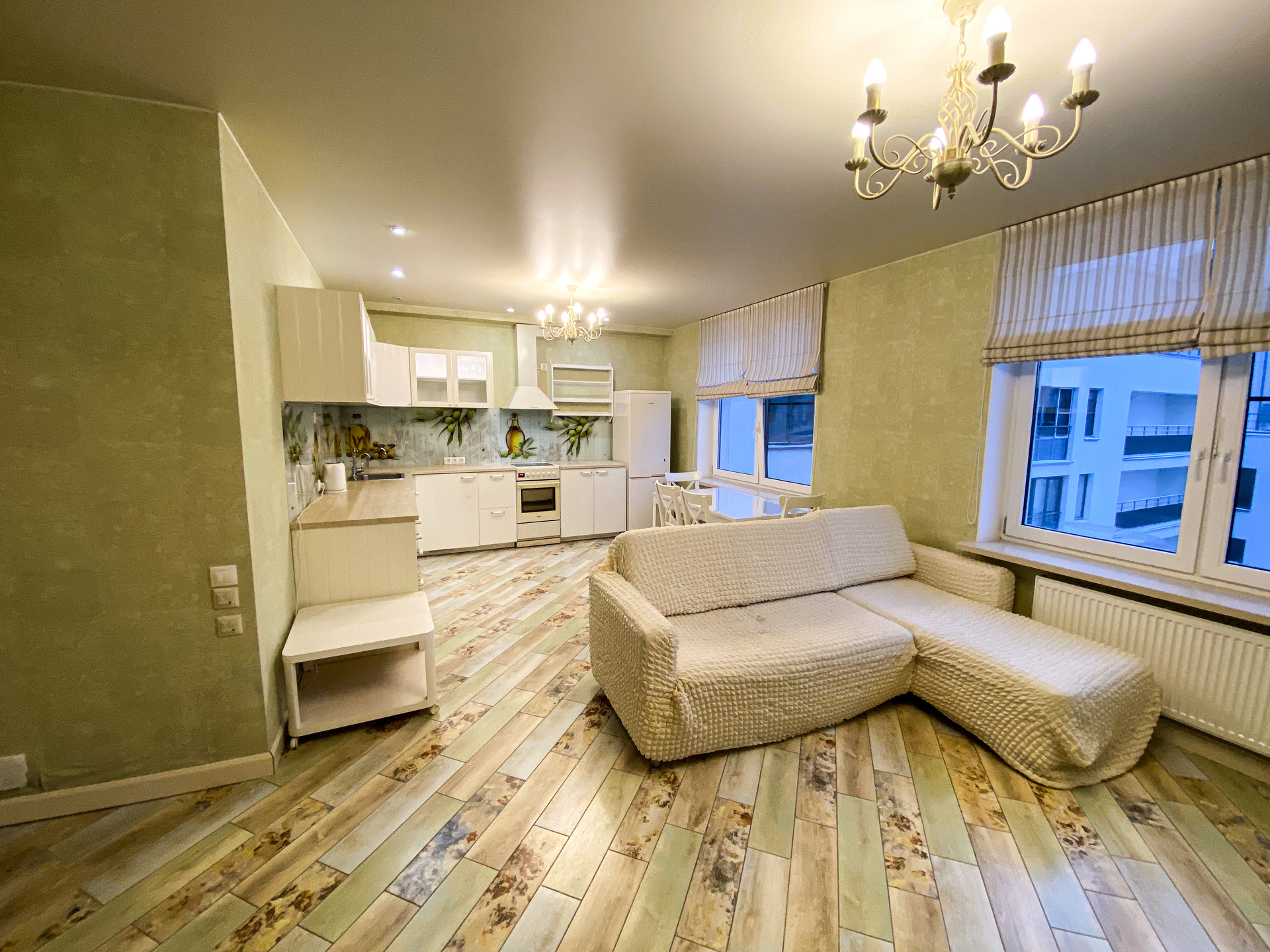 Просторная и уютная квартира с тремя спальнями и большой кухней-гостинной. Сделан евроремонт. В квартире есть гардеробная и индивидуальные системы хранения в каждой комнате. Также есть два совмещенных санузла. В наличии вся необходимая для комфортной для жизни техника: холодильник, стиральная машина, плита с духовкой, посудомоечная машина, чайник, вытяжка, утюг, бойлер.