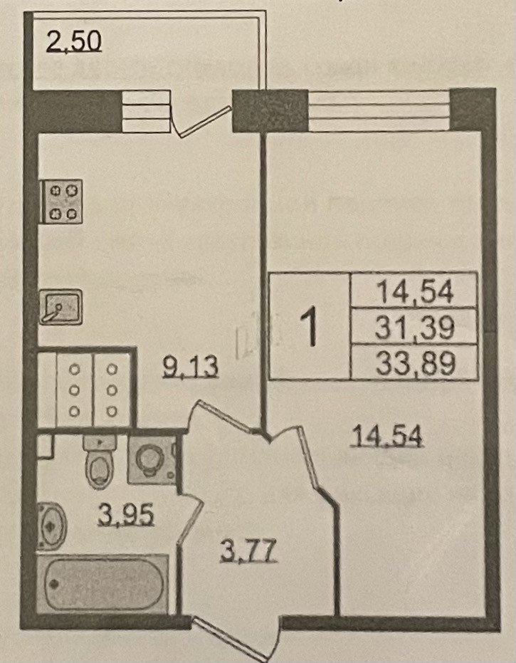 Общая площадь 31.39 м2