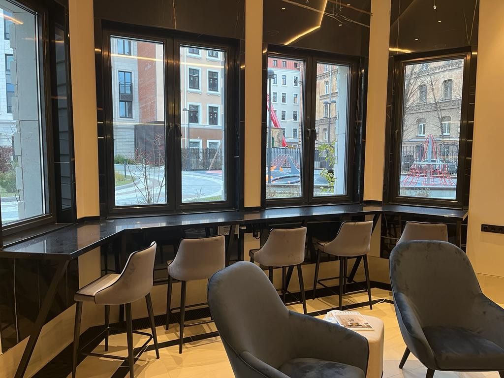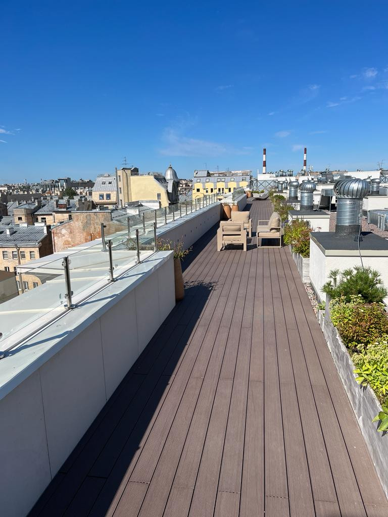 В доме общедоступных терраса на крыше, общее пространство для работы, фитнес студия (последние фотографии - рабочее пространство, переговорная, фитнес студия, терраса).
