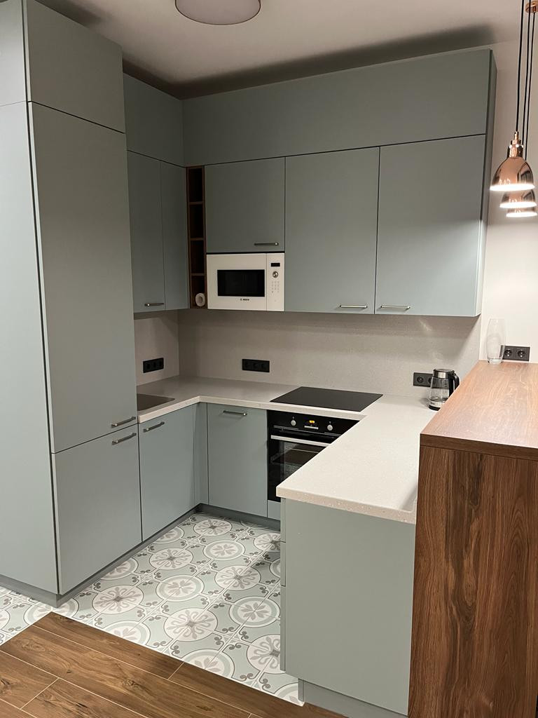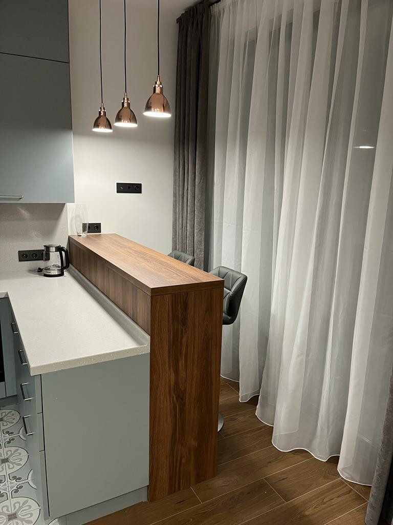 Большая кухонная поверхность для любителей кулинарных изобретений.