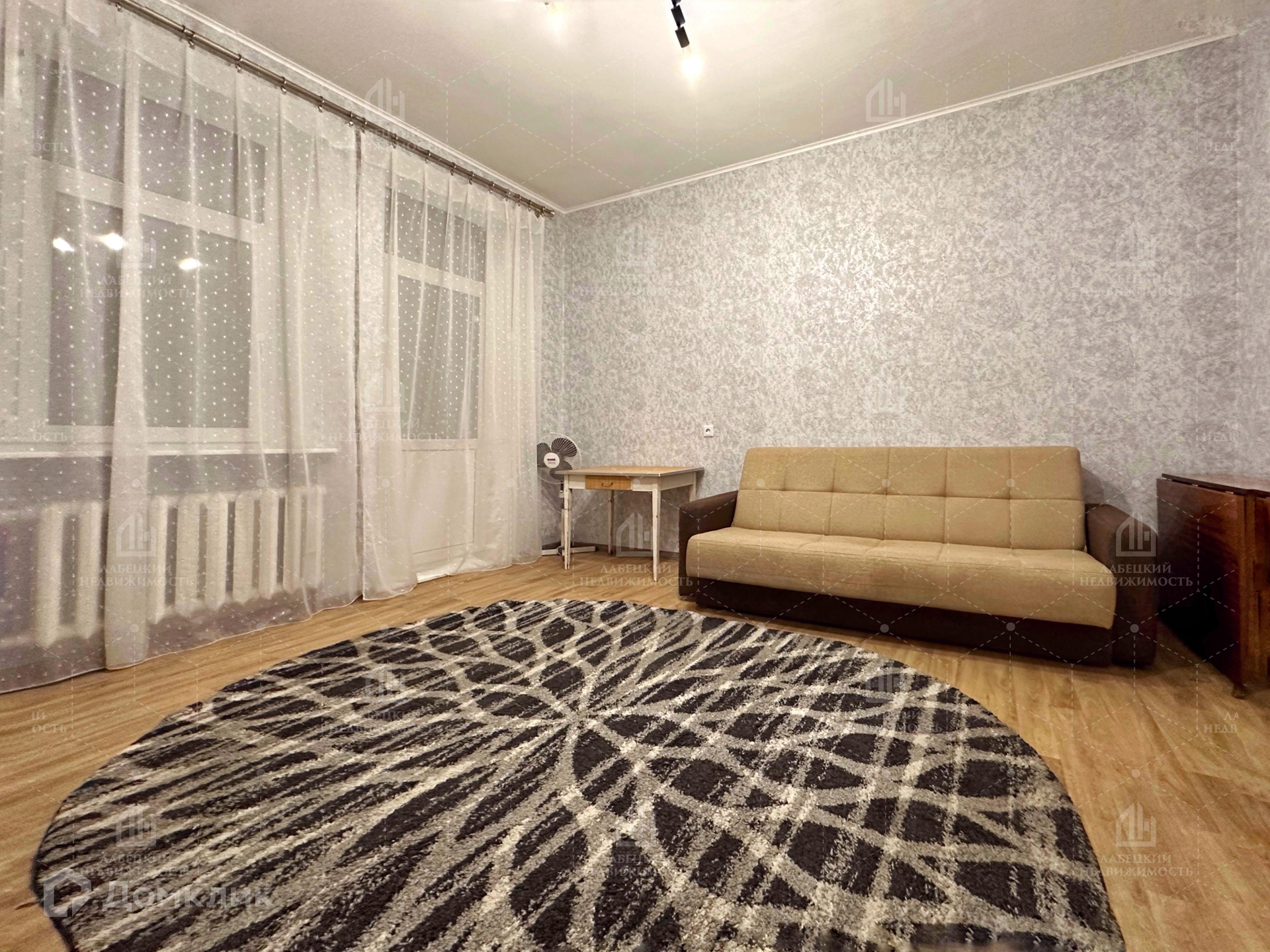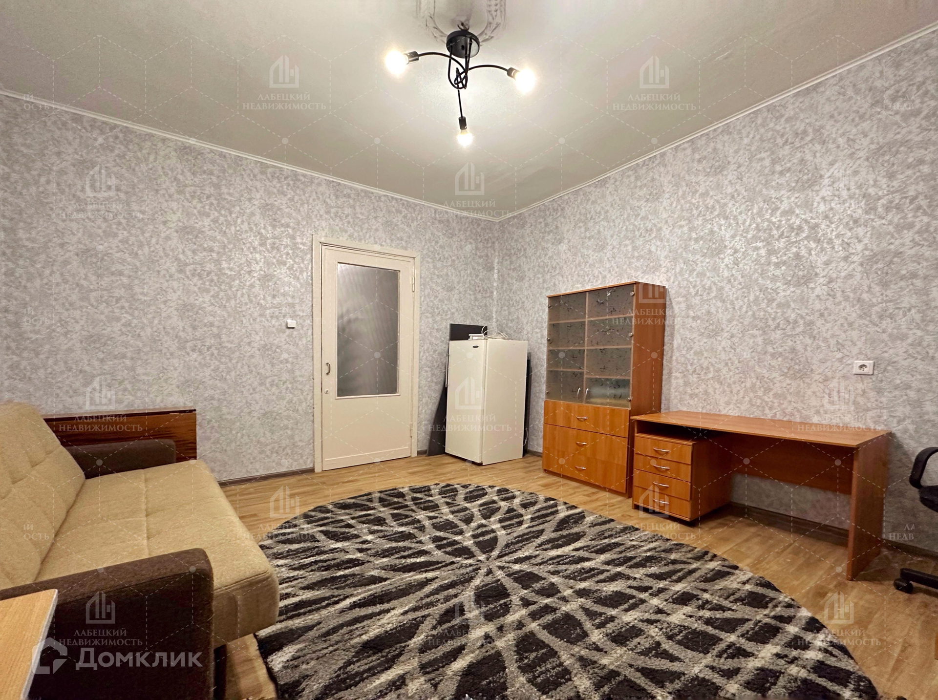 ПРОСТОРНАЯ КОМНАТА с диваном и мебелью имеет выход на  БАЛКОН.