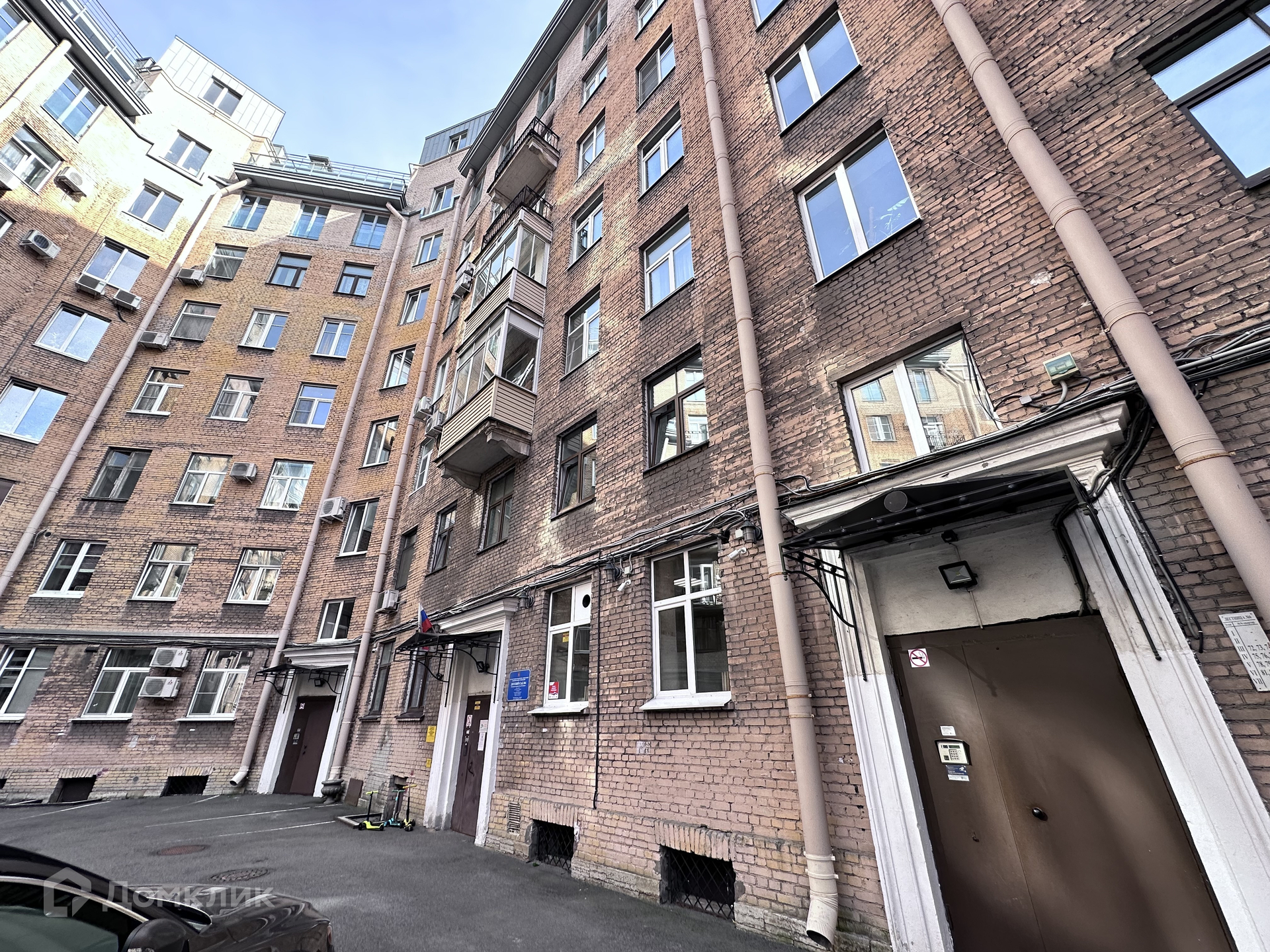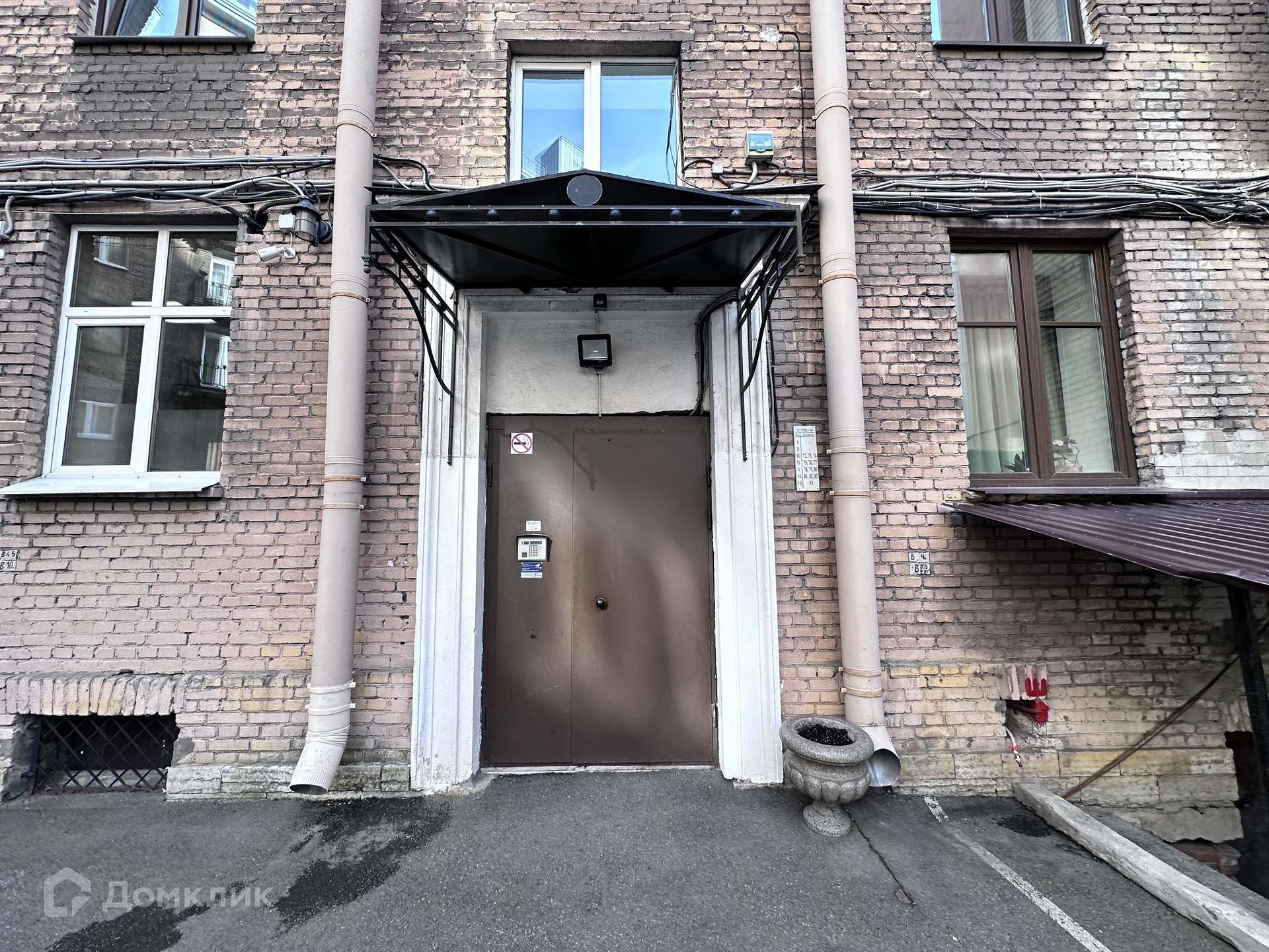 Дом - кирпичный, окна выходят во двор. В подъезде 1 лифт - 0 грузовых и 1 пассажирский. Во дворе есть парковка за шлагбаумом.