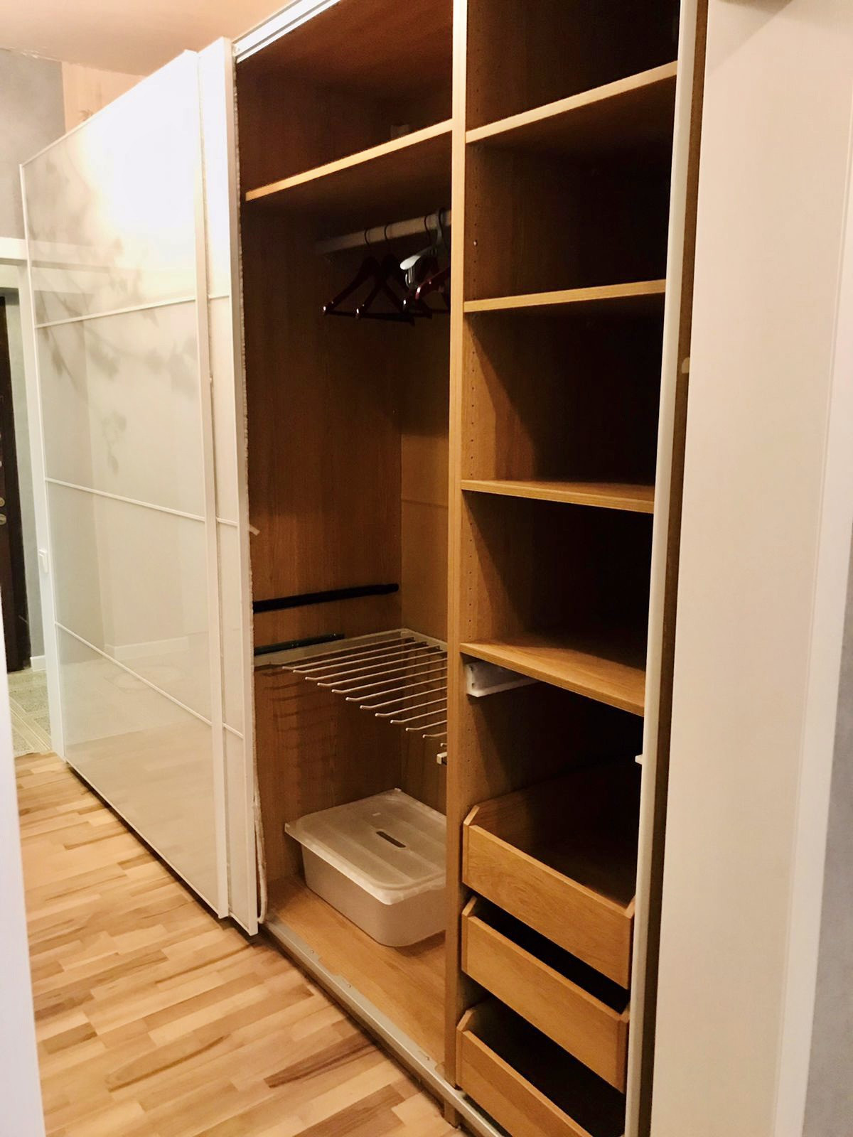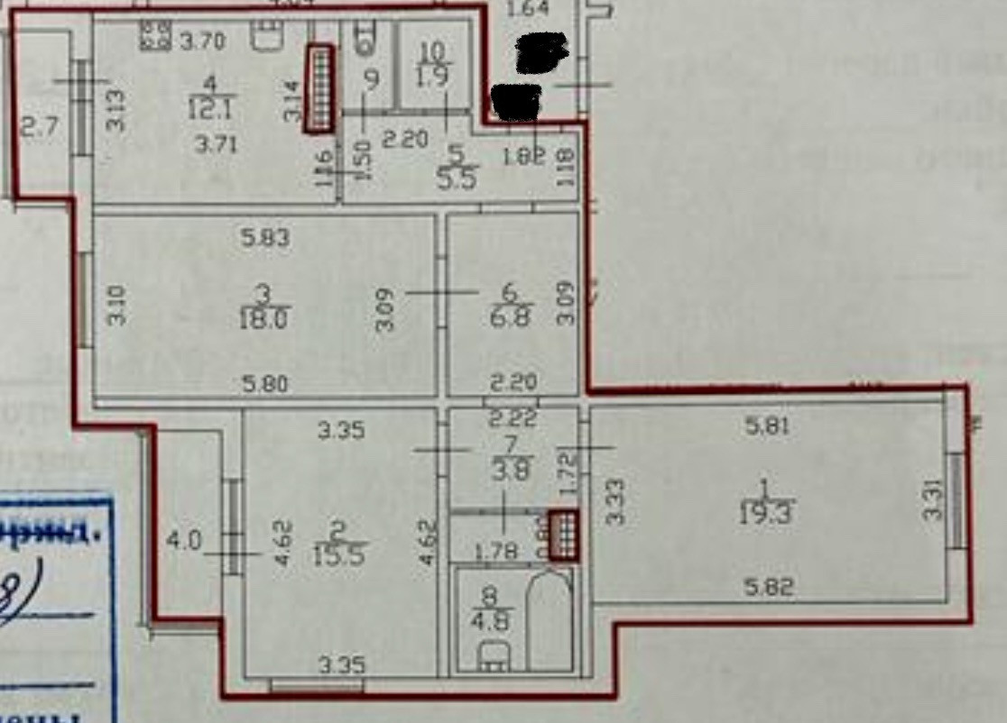 Квартира на 14 эт. 17 эт. Монолитного дома с железобетонными перекрытиями 2010 г.п.. Общ.S 89 кв.м., изолированные комнаты правильной формы 19,3+15,5 ( с выходом на застекленную лоджию) +18 кв.м. кухня 12,1 кв.м. ( с выходом на застекленную лоджию) большая прихожая-коридор с оборудованными встроенным шкафом-гардеробом. И отдельной гардеробной комнатой. Окна на 2 стороны (во двор). Два сан. Узла. в современном кафеле с полноценной ванной и гостевой.
