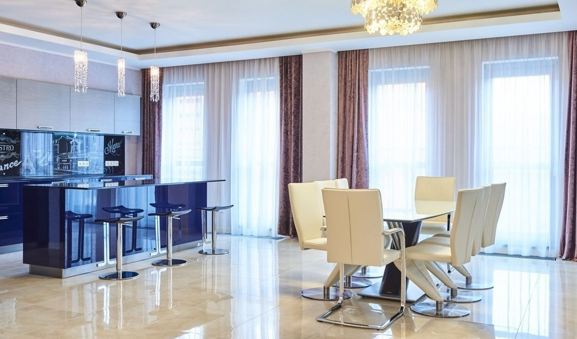 В квартире выполнен ремонт по дизайн проекту с применением качественных и натуральных материалов.Панорамное остекление.