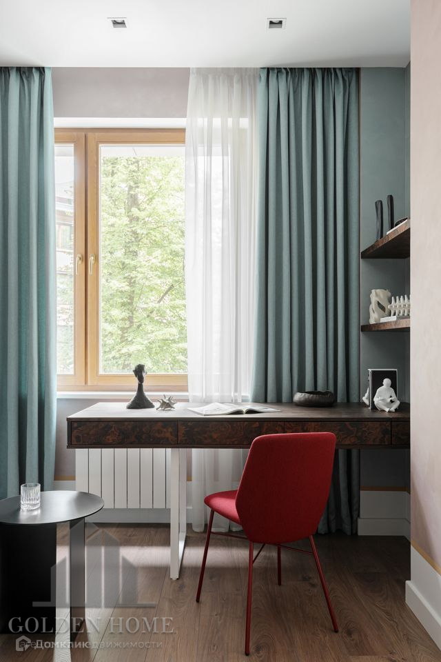Окна квартиры выходят в ухоженный двор с ландшафтным дизайном.