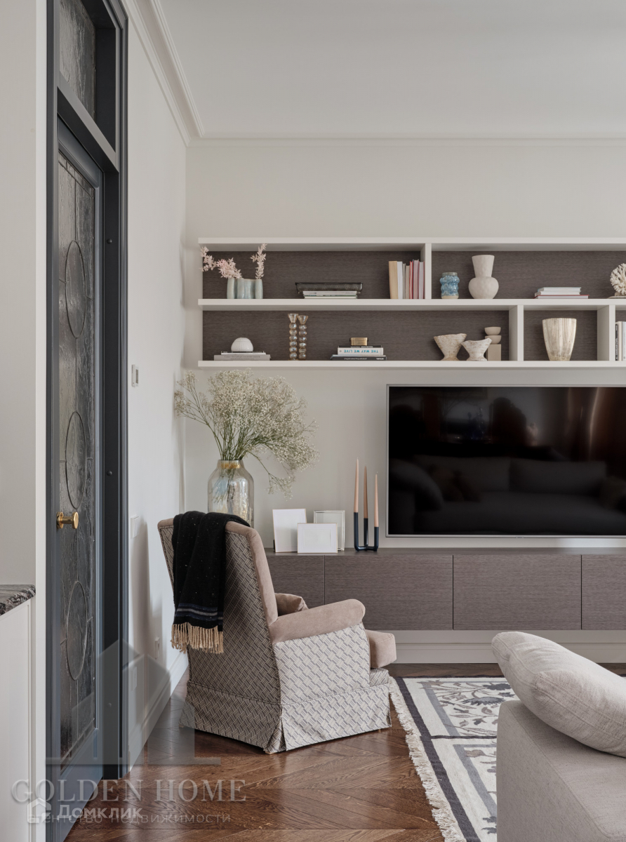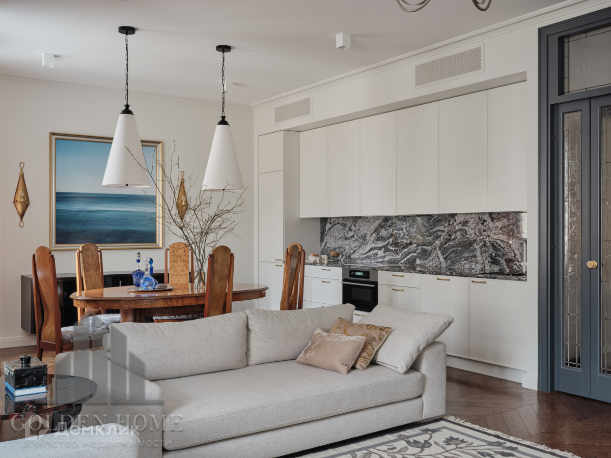 По планировке квартира состоит из: Просторной кухни-гостиная 40 кв.м., 3 изолированные комнаты по 20 кв.м., 2 санузла, 3 гардеробные, постирочная и кладовая комната. Высота потолков 3.1 метра.