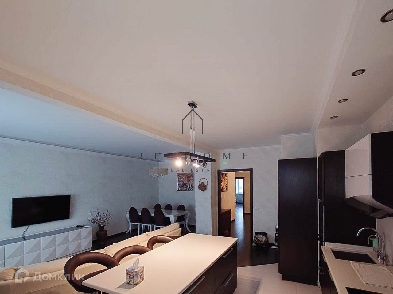 Просторная кухня-гостиная с обеденной зоной, две просторные спальни, гардеробная, две совмещенные ванные комнаты (с душевой и ванной), лоджия с панорамными окнами, балкон.