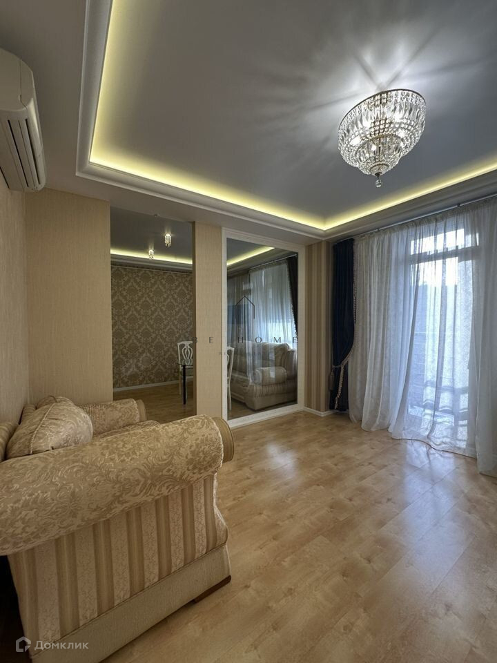 Планировкой пpедусмотрены просторная кухня-гостиная, комната, гардеробная, совмещенная ванная комната с душем.