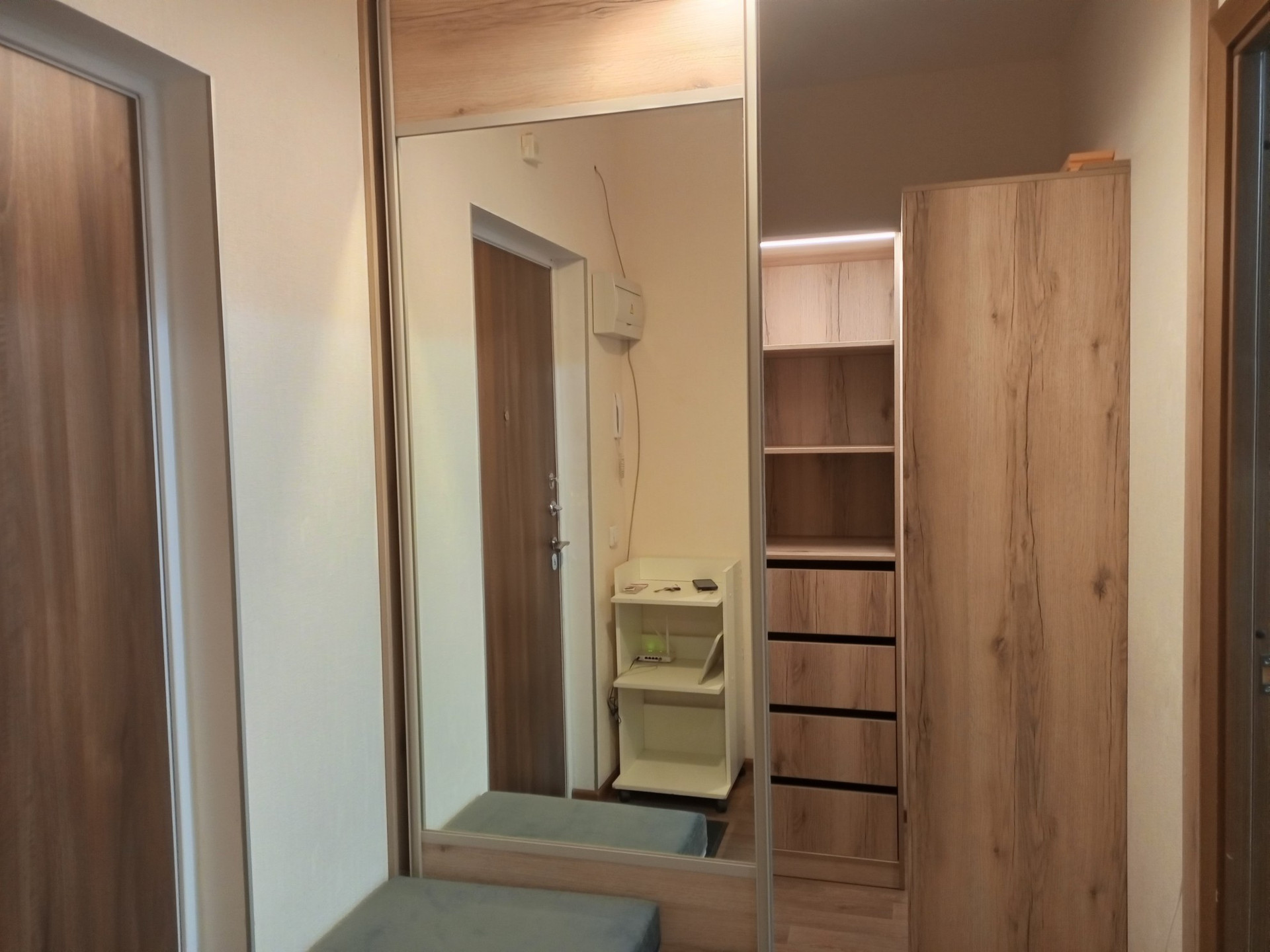 Установлена удобная гардеробная в прихожей.