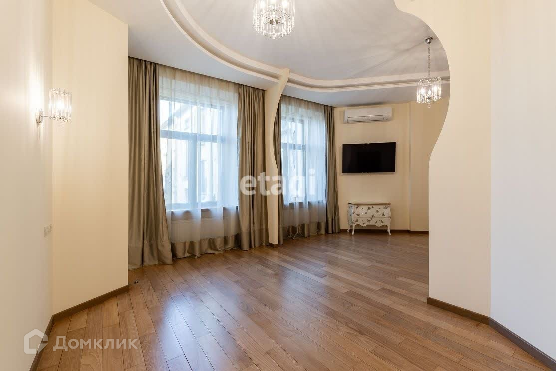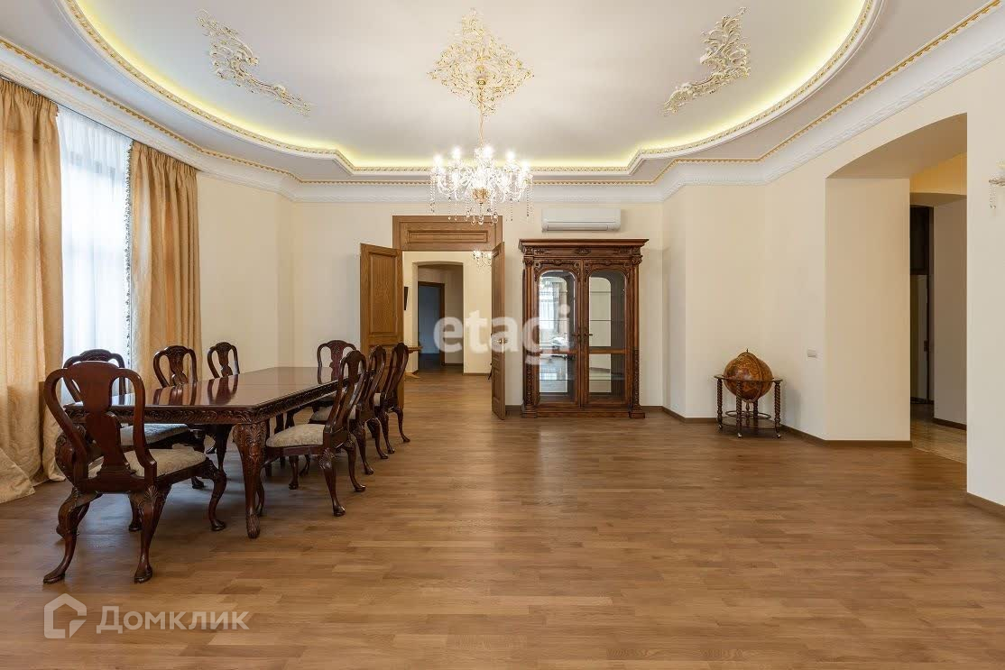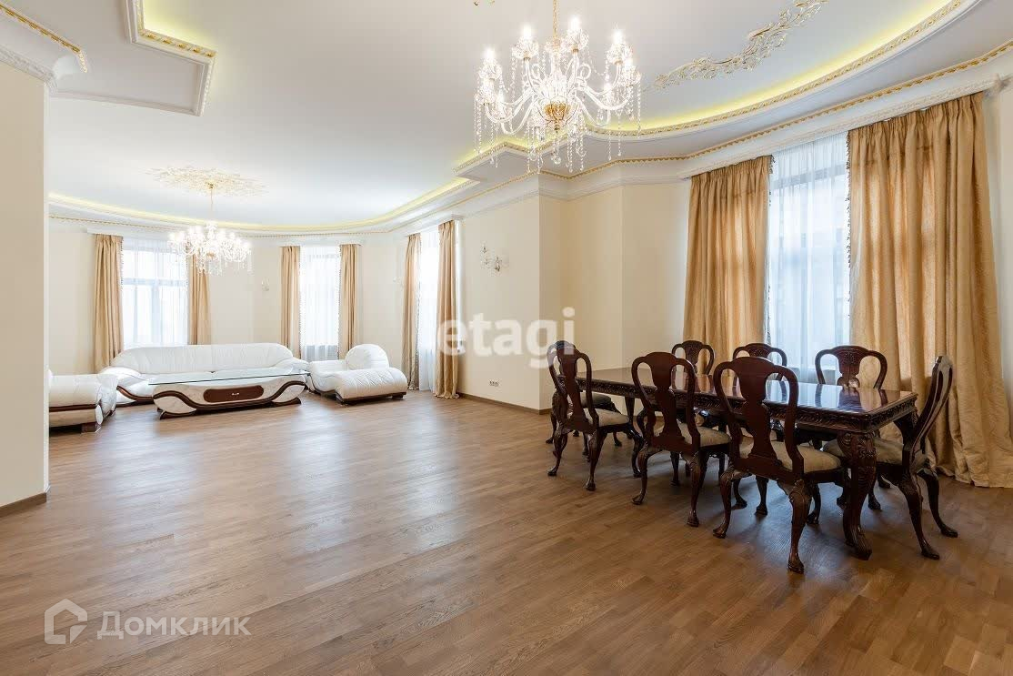 Квартира с солнечной стороны расположена на пятом этаже шестиэтажного дома, отремонтирована парадная, новый лифт. Имеет два входа с Парадной и Чёрной лестниц. Общая площадь 293 м2: две спальни 42 м2 и 25 м2, гостиная 80 м2, холл 24 м2, комната (детская/кабинет) 43 м2, кухня 25 м2, три санузла, есть система кондиционирования. Меблированная квартира имеет все необходимое оборудование для комфортного проживания.