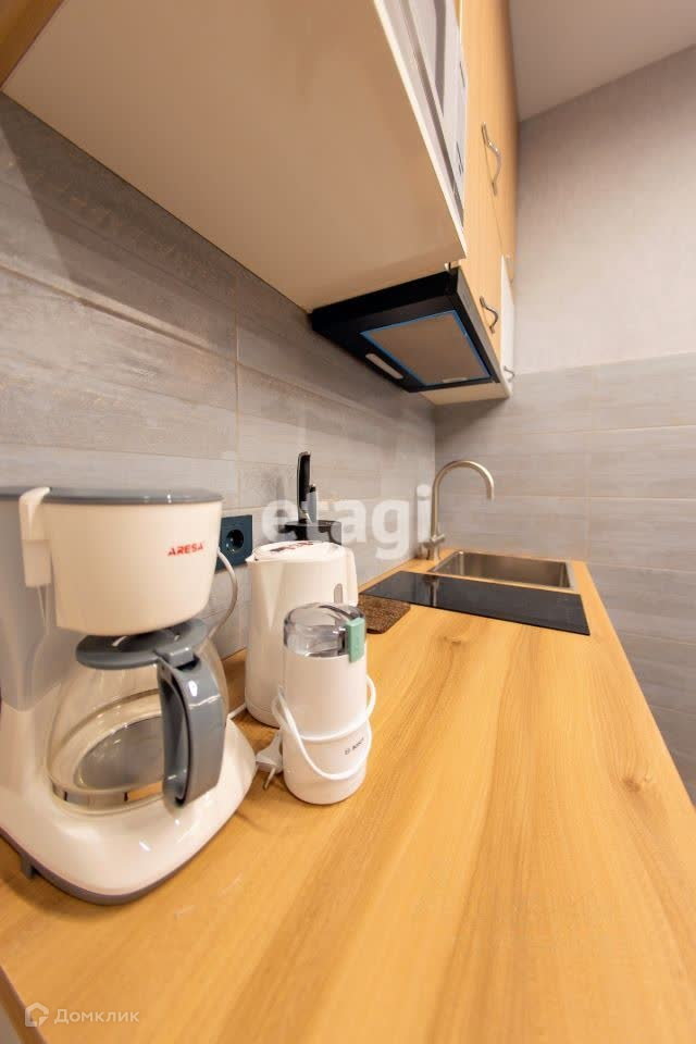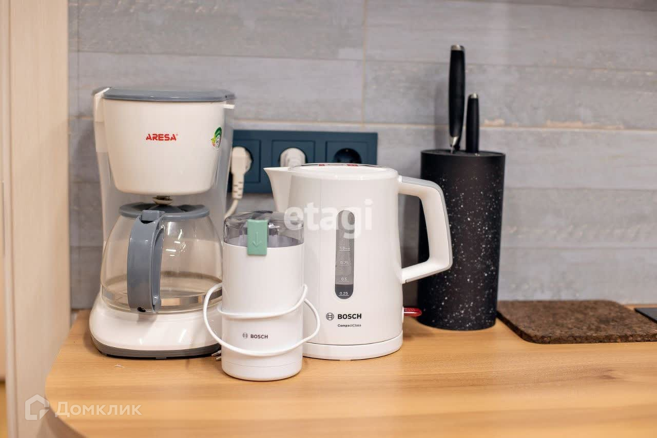 Оснащена почти всеми возможными приборами: стиралка, холодильник, плита, вытяжка, фильтры для воды, микроволновка, чайник, кофеварка, кофемолка, гладильная доска, утюг, сушилка подвесная, сушилка электрическая, кондиционер, комплект постельного белья и подушки.
