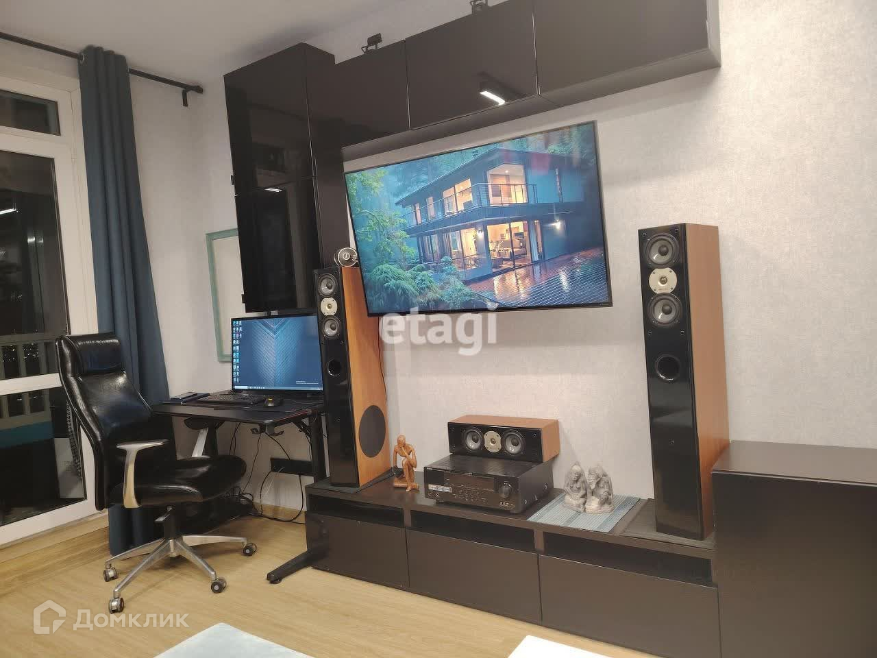 Студия с уникальным искусственным освещением, Hi-tech дизайном, мебелью, техникой, электроникой и нескучным видом из окна.