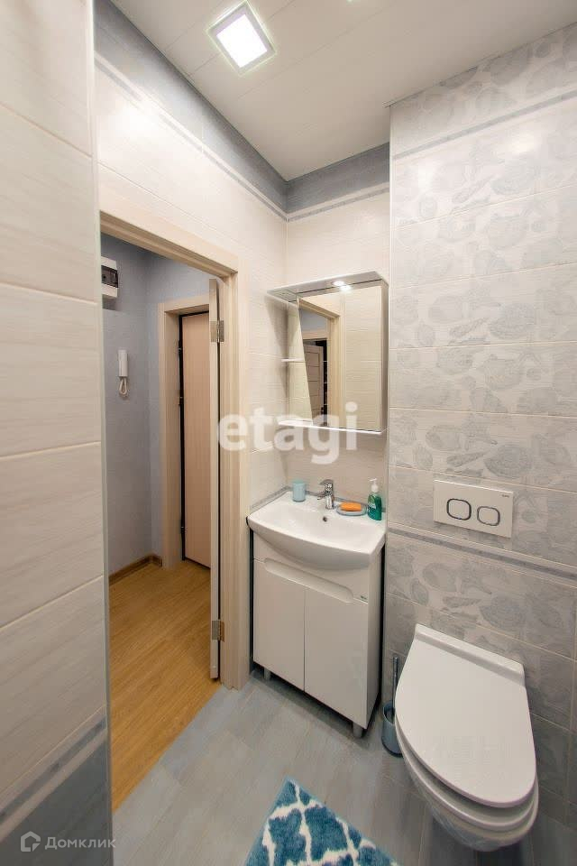 Очень светлая ванная комната с зеркальным шкафчиком