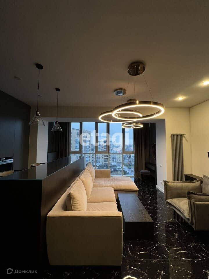 Открытая планировка, которая объединяет гостиную, кухню и спальную зону. Современно оборудованная кухня с современным кухонным гарнитуром. Просторная гостиная с большими окнами, которые обеспечивают естественное освещение. Имеется открытая парковка, грузовой и пассажирский лифт.