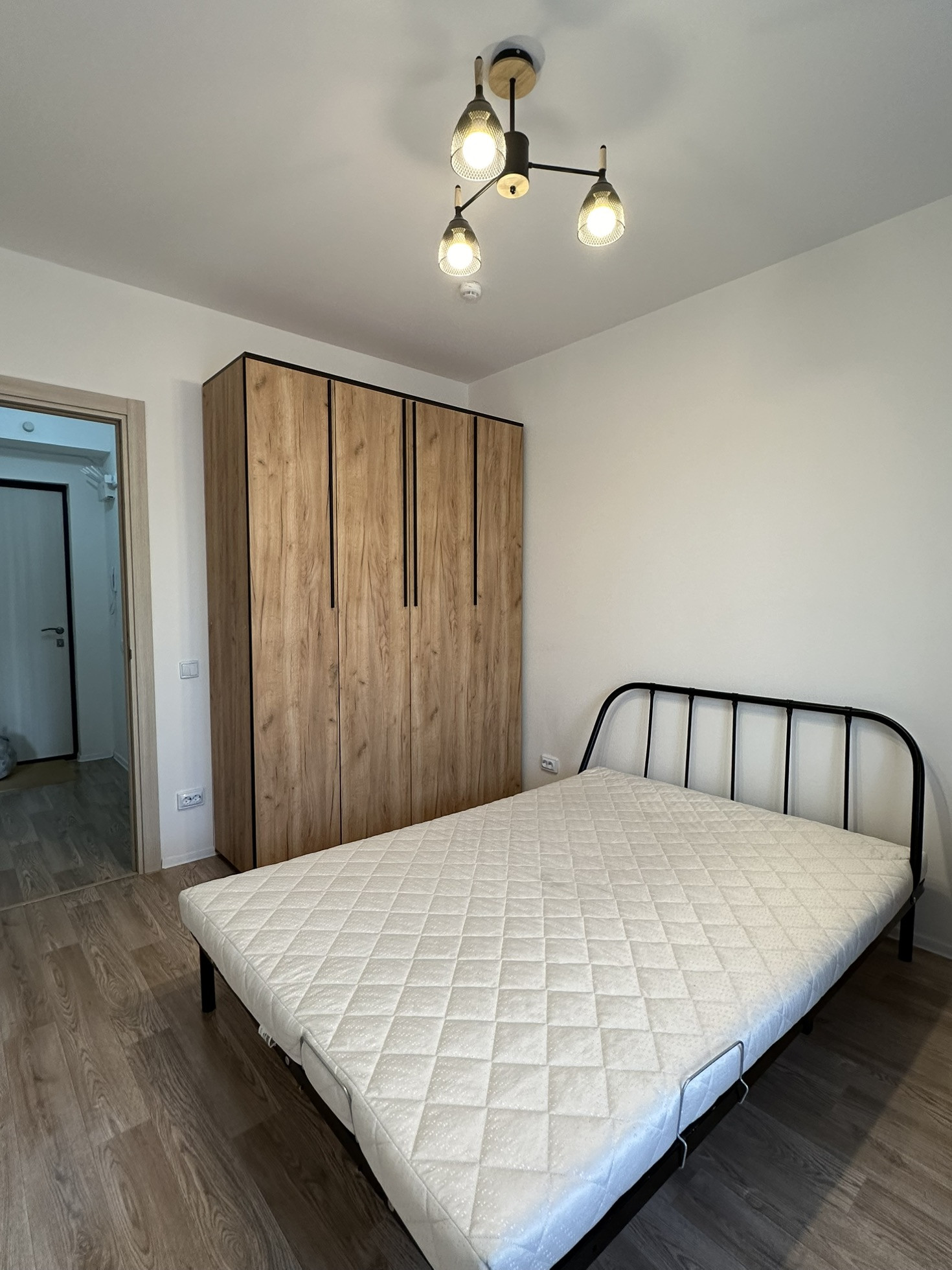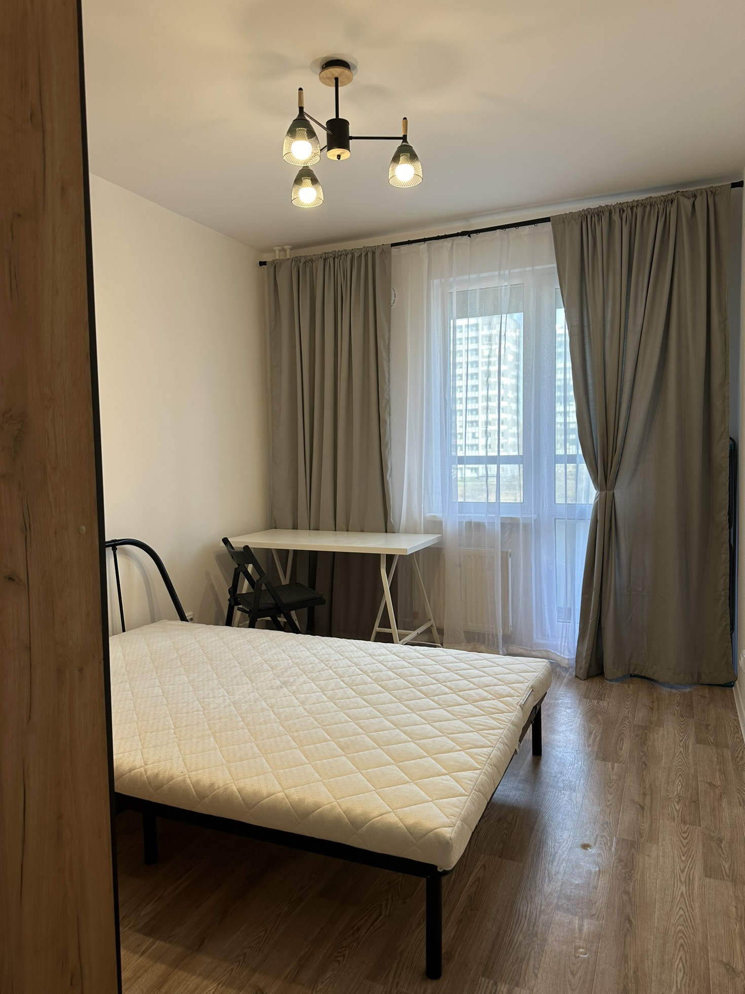 В спальне есть вместительный распашной шкаф, двуспальная кровать с матрасом Аскона, рабочее место. Проведен высокоскоростной интернет
