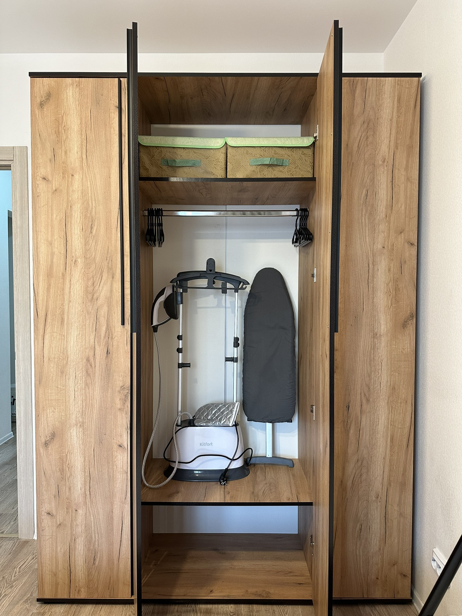 Дополнительно: фен, отпариватель с гладильной доской, раскладная сушилка