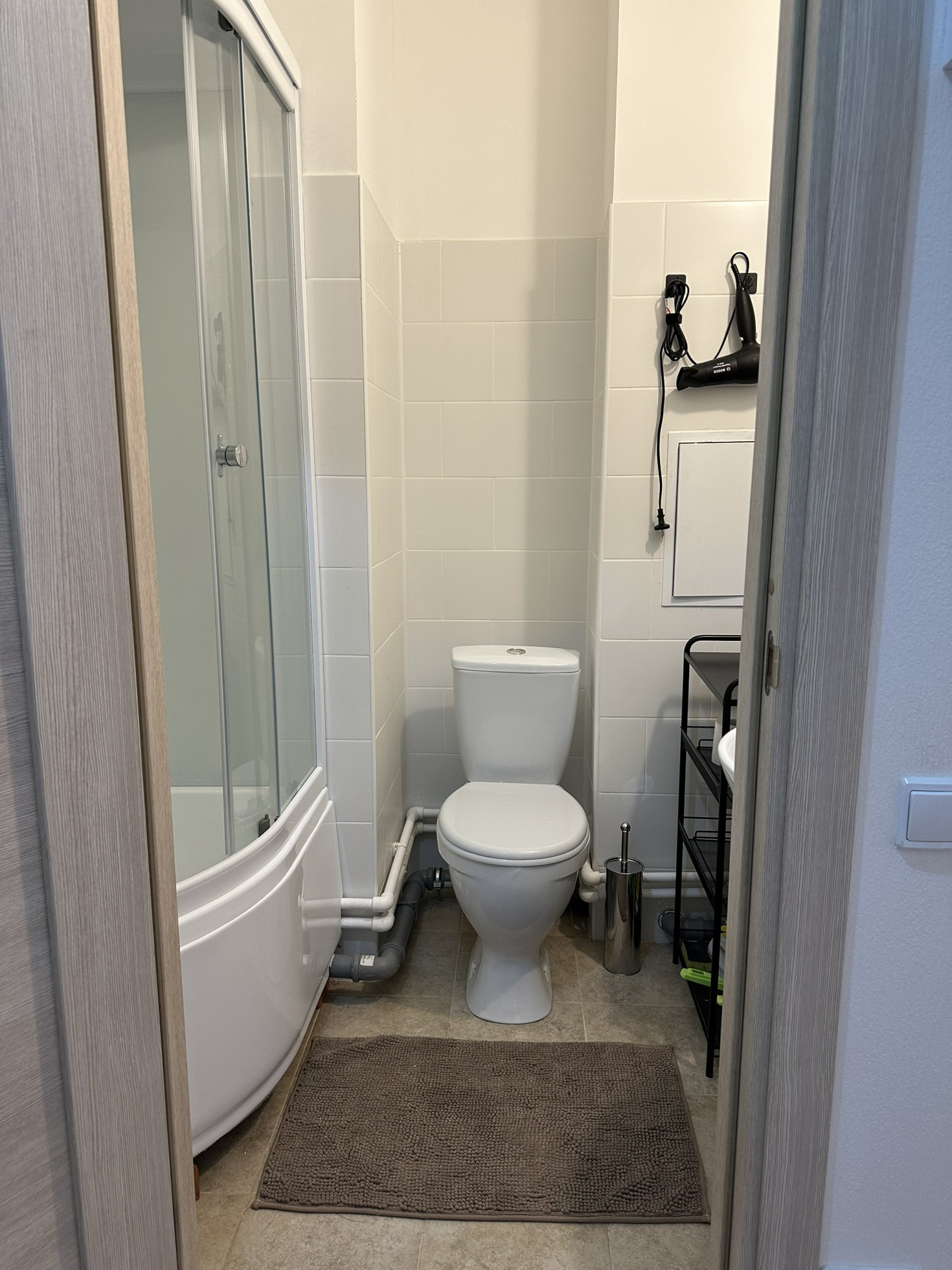 Санузел совмещенный, с душевой кабиной.