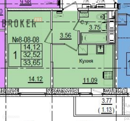 Общая площадь 33.65 м2