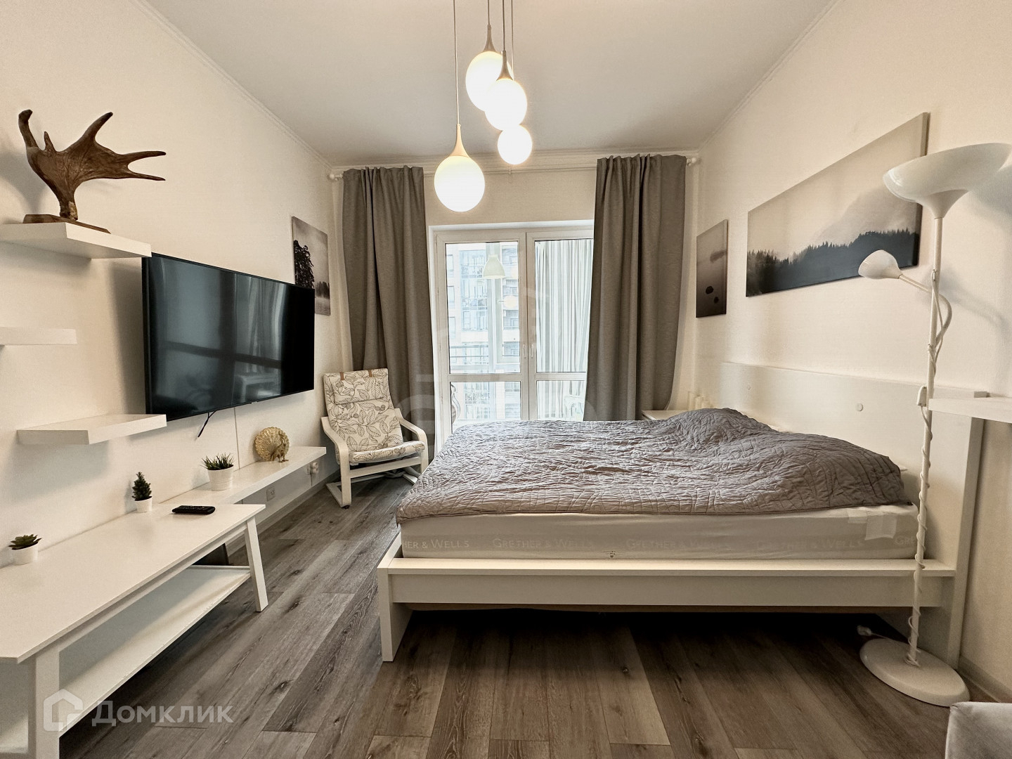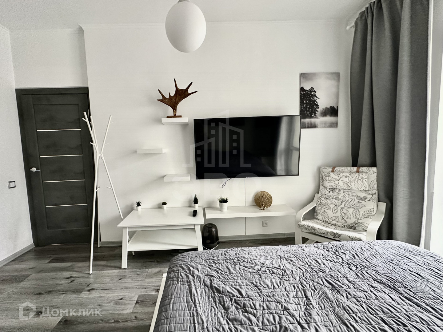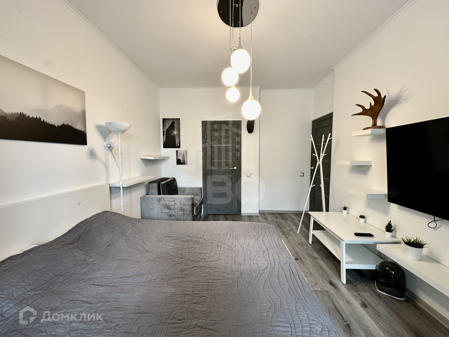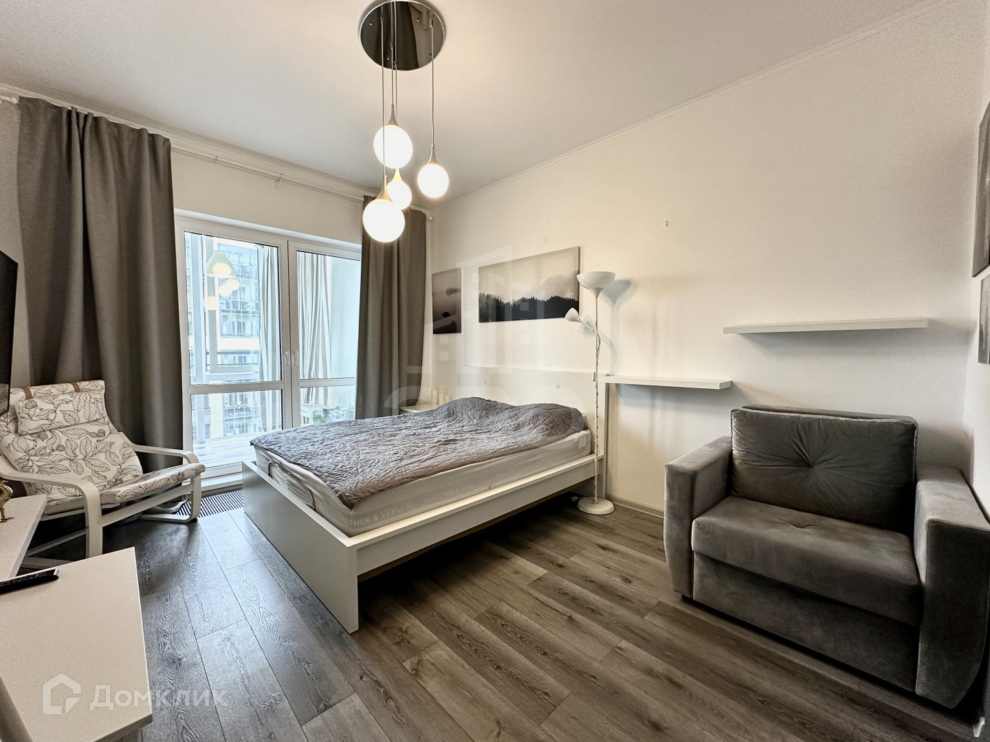 * Освещение: люстра, потолочные светодиодные лампы и торшер;