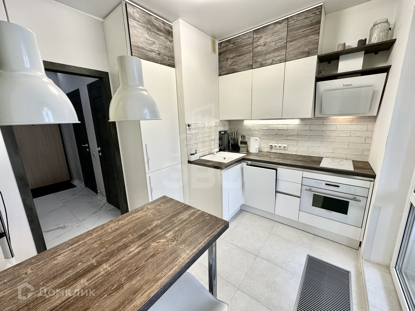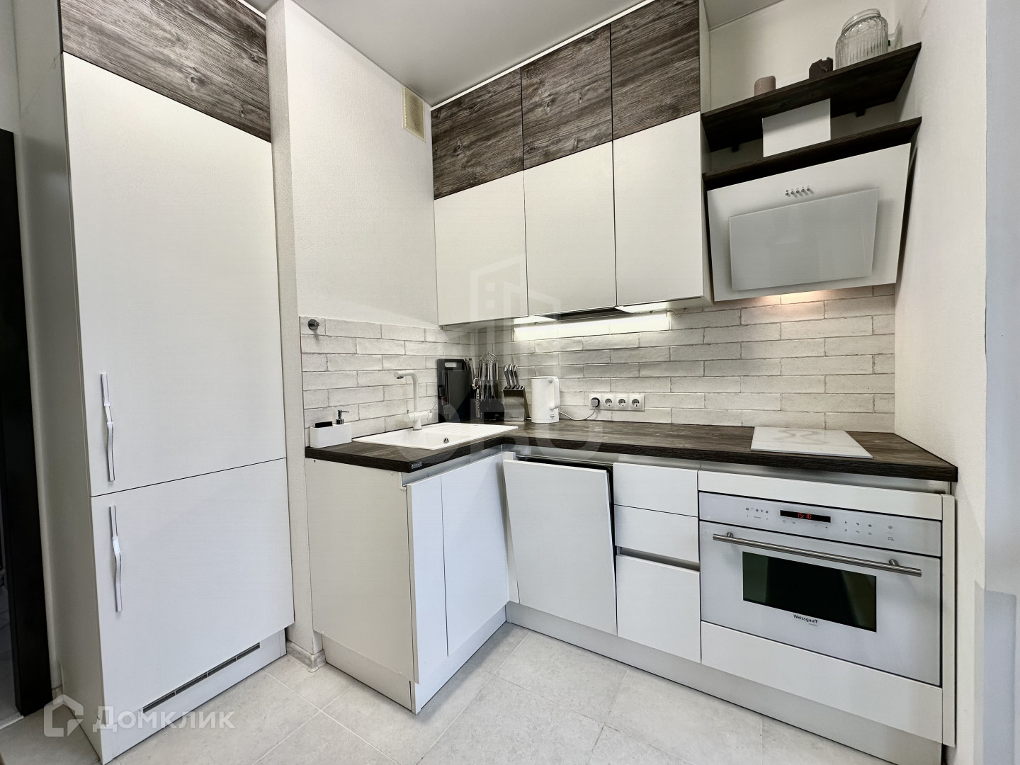 * Вместительная кухня с великолепным дизайном и всеми необходимыми приборами (большой встроенный холодильник «no frost», посудомойка, варочная панель, духовка-микроволновая печь, вытяжка, чайник и разного рода кухонная утварь);