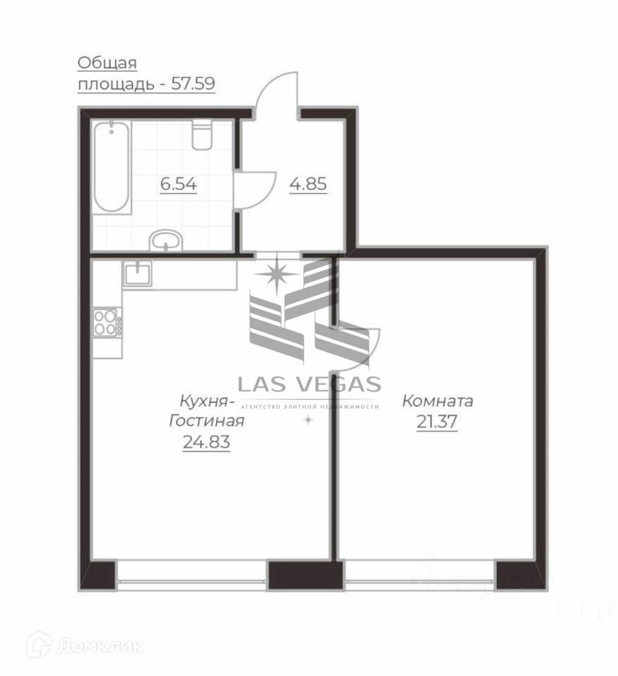 Общая площадь 58 м2