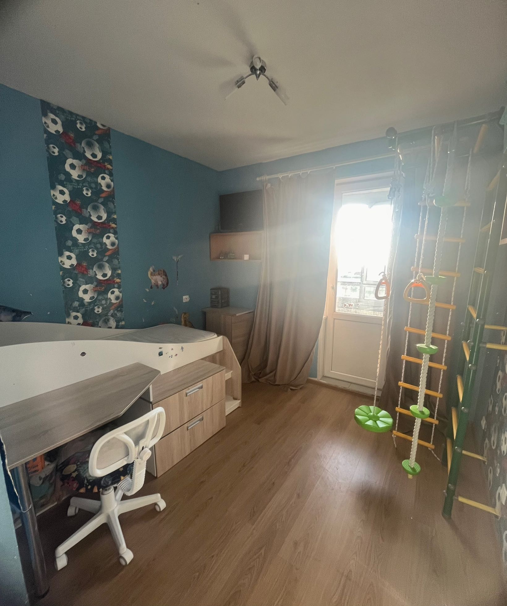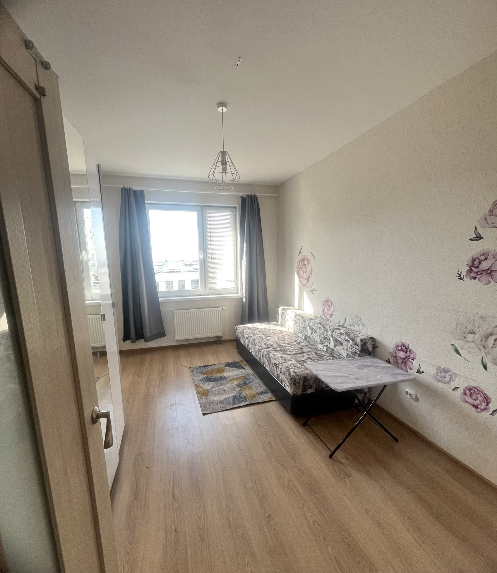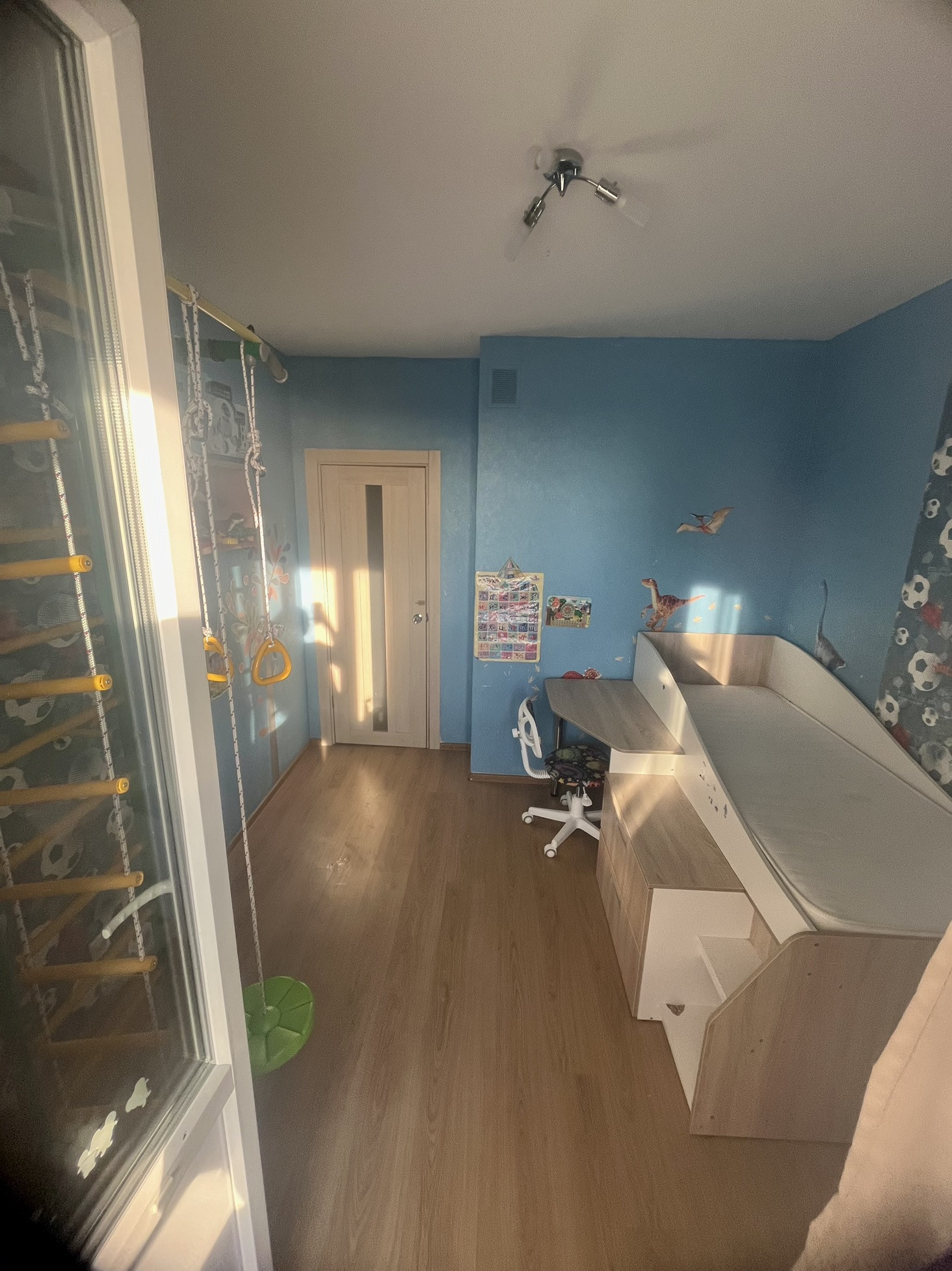 2 изолированные комнаты: спальня-гостиная и детская (14 и 10 м2). Высота потолков-2,70