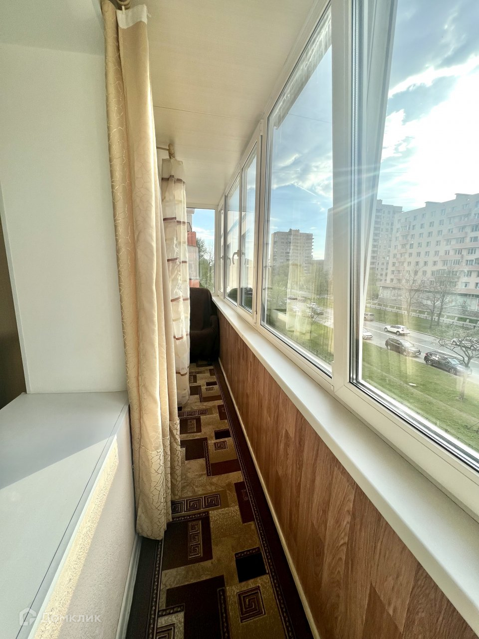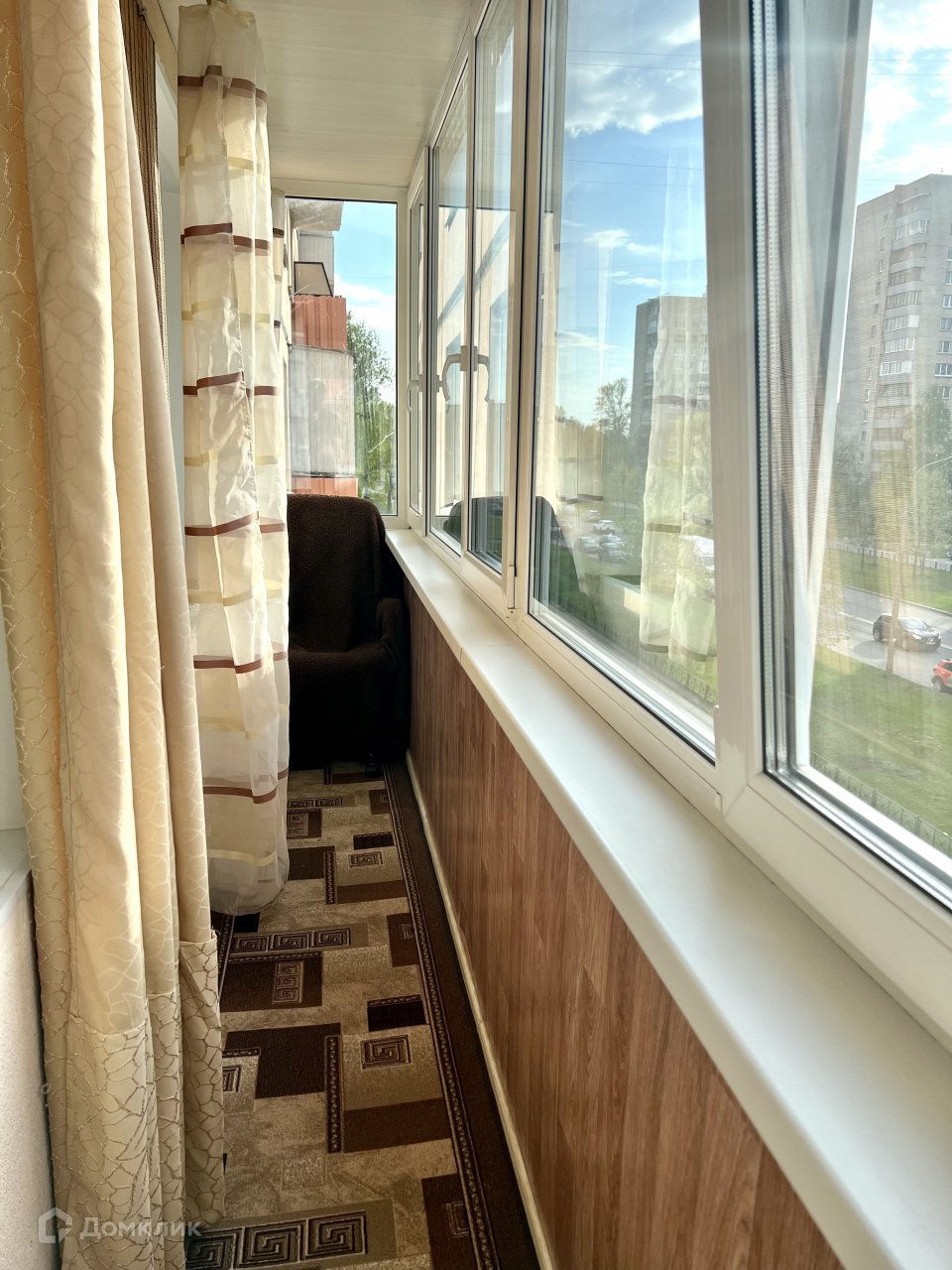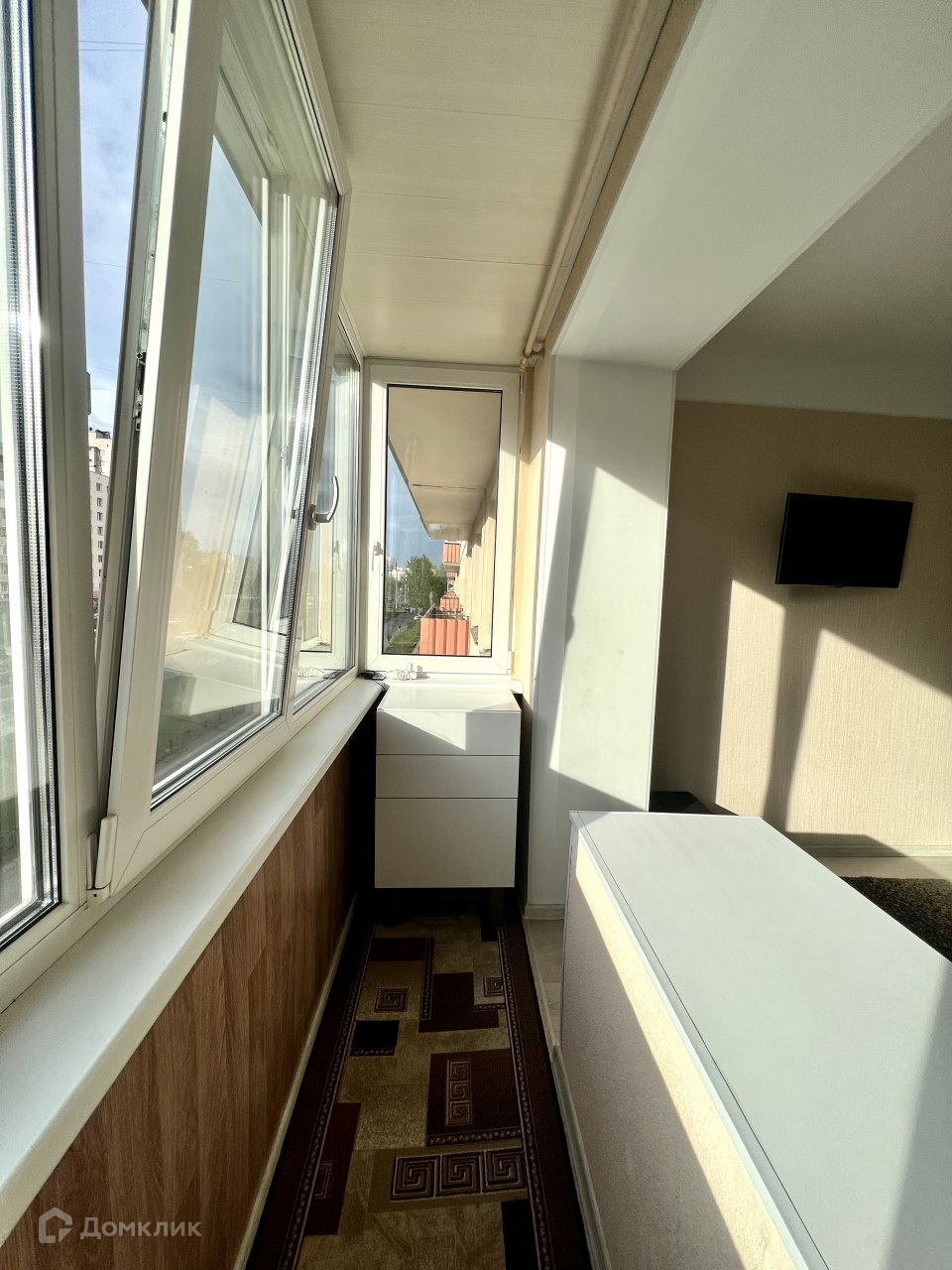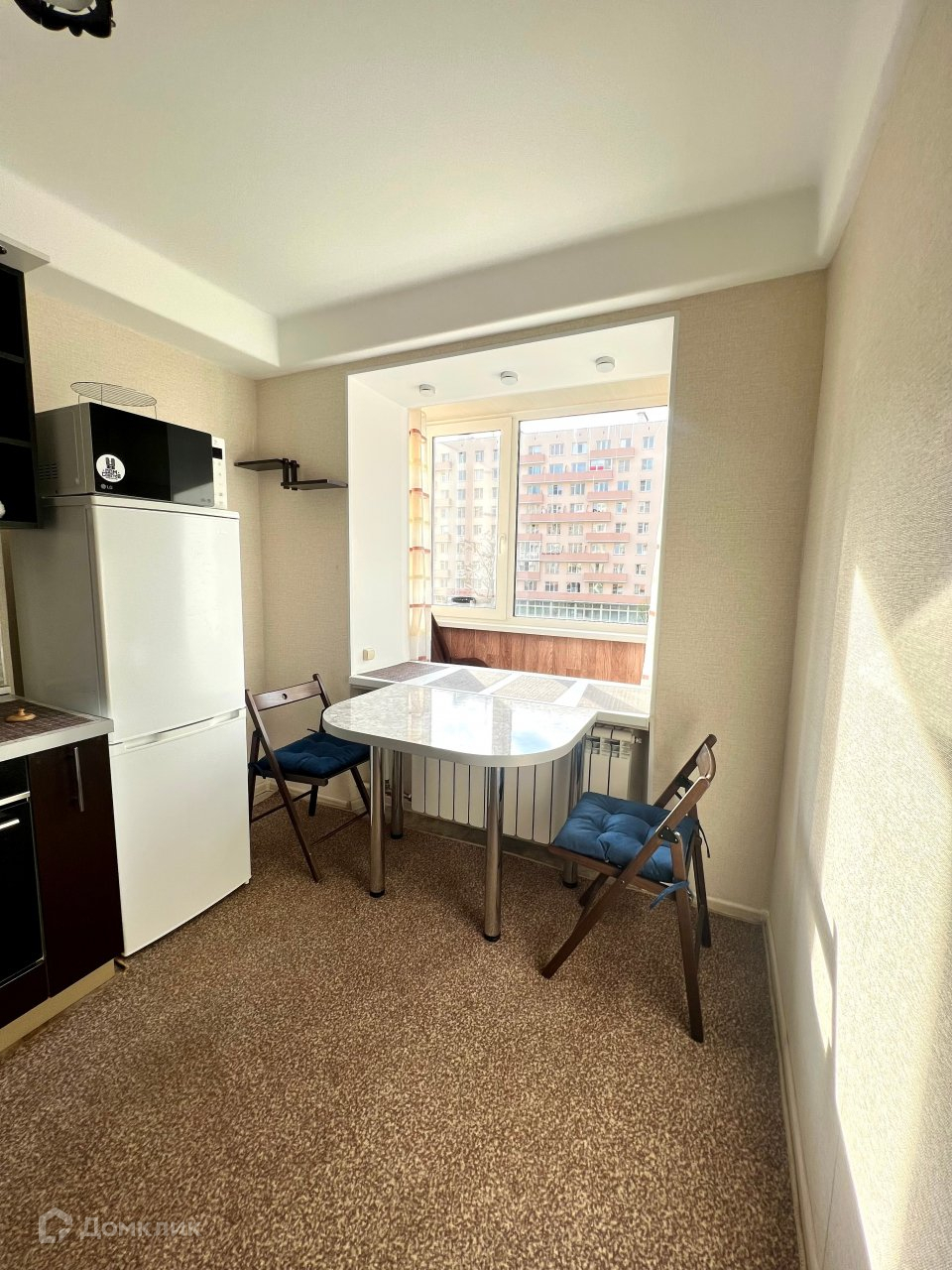 Квартира расположена на 3 этаже. Общая площадь- 34 кв. м. Комната 16 кв. м, кухня 9 кв.м. Есть большой застекленный балкон. Квартира очень светлая.