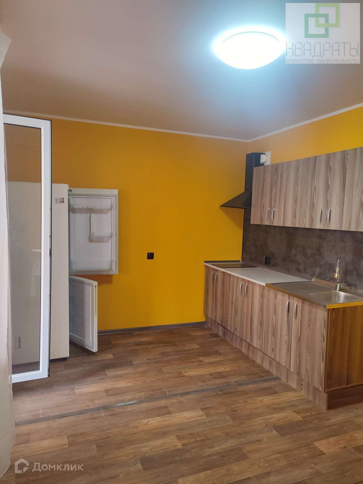 В квартире почти нет мебели (только один диван и два шкафа), На кухне гарнитур и двухкамерный холодильник.