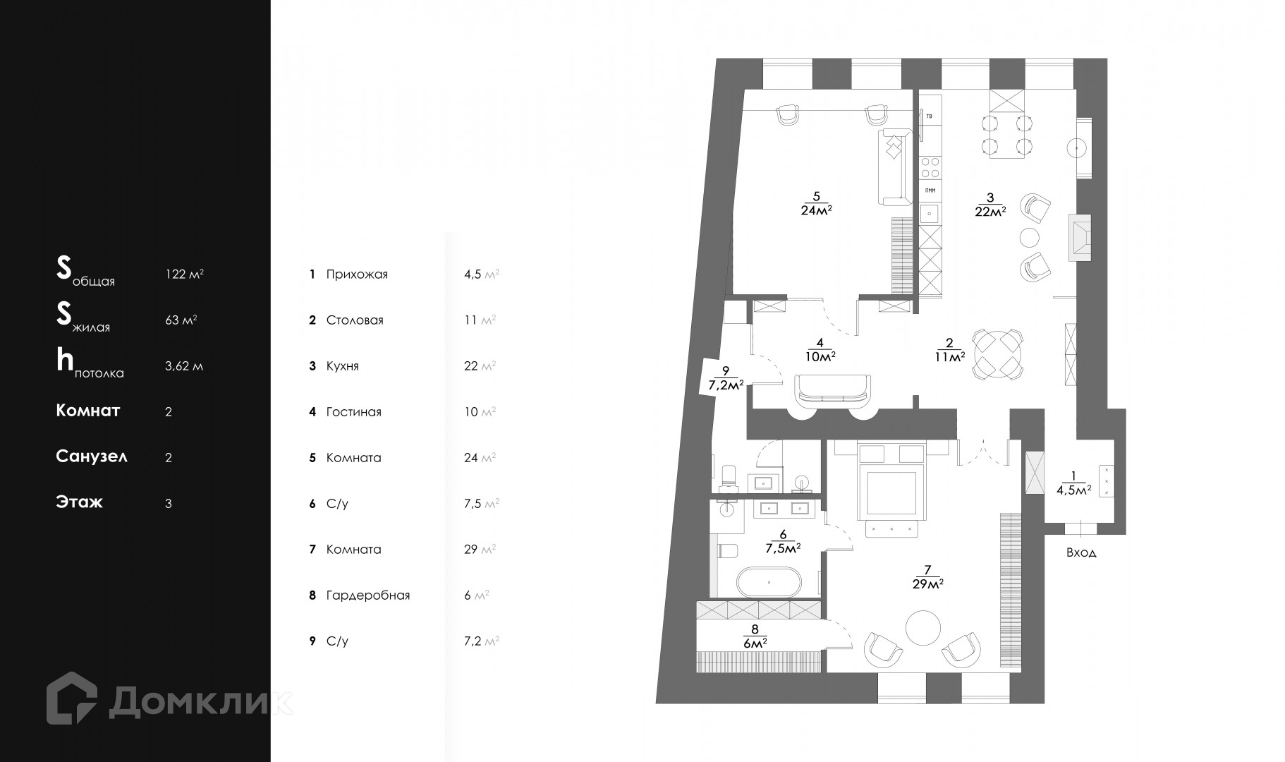 Общая площадь 122 м2