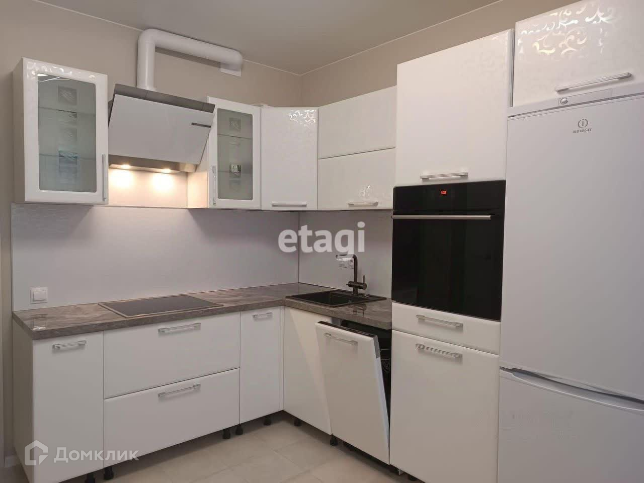 -кухня с просторным угловым кухонным гарнитуром и качественной бытовой техникой: встроенный духовой шкаф, плита, вытяжка, посудомоечная машинка, двухкамерный холодильник, кофеварка,