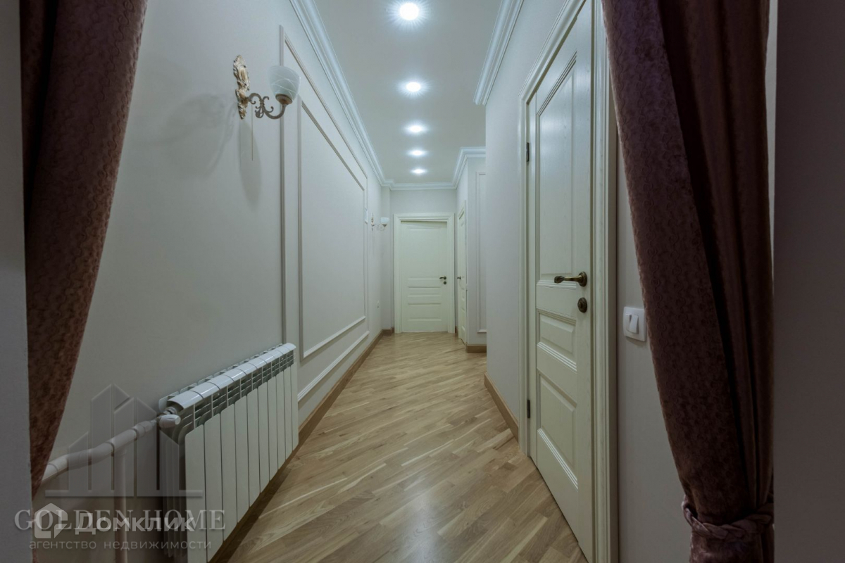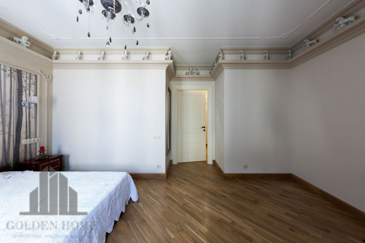 Продуманное пространство квартиры включает в себя:  просторную кухню, гостиную, две изолированные спальни, два санузла,  гардеробную и кладовую комнату. Комплектация эксклюзивной мебелью европейских мастеров и техникой ведущих мировых производителей.
