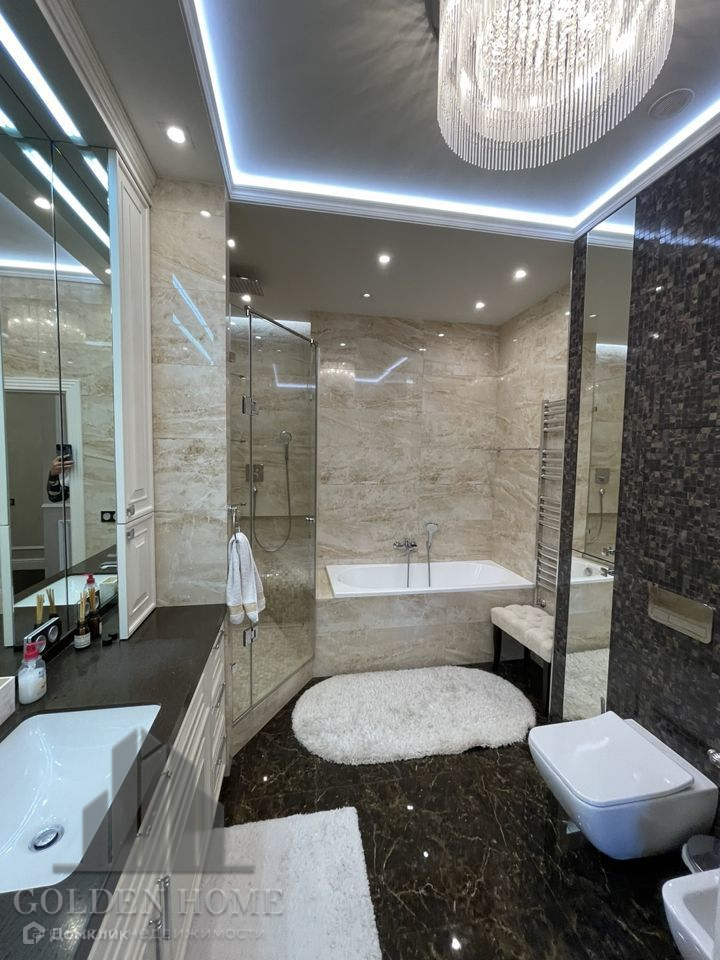 В квартире выполнен дизайнерский ремонт. Стены - венецианская штукатурка, в ванне и в туалете мозаика. Вся мебель выполнена на заказ в лучших европейских фабриках. Люстры хрустальные ручной работы. Вся сантехника Villеrоy bосh. Бытовая техника Мiеllе, Кuрреrsbusсh.