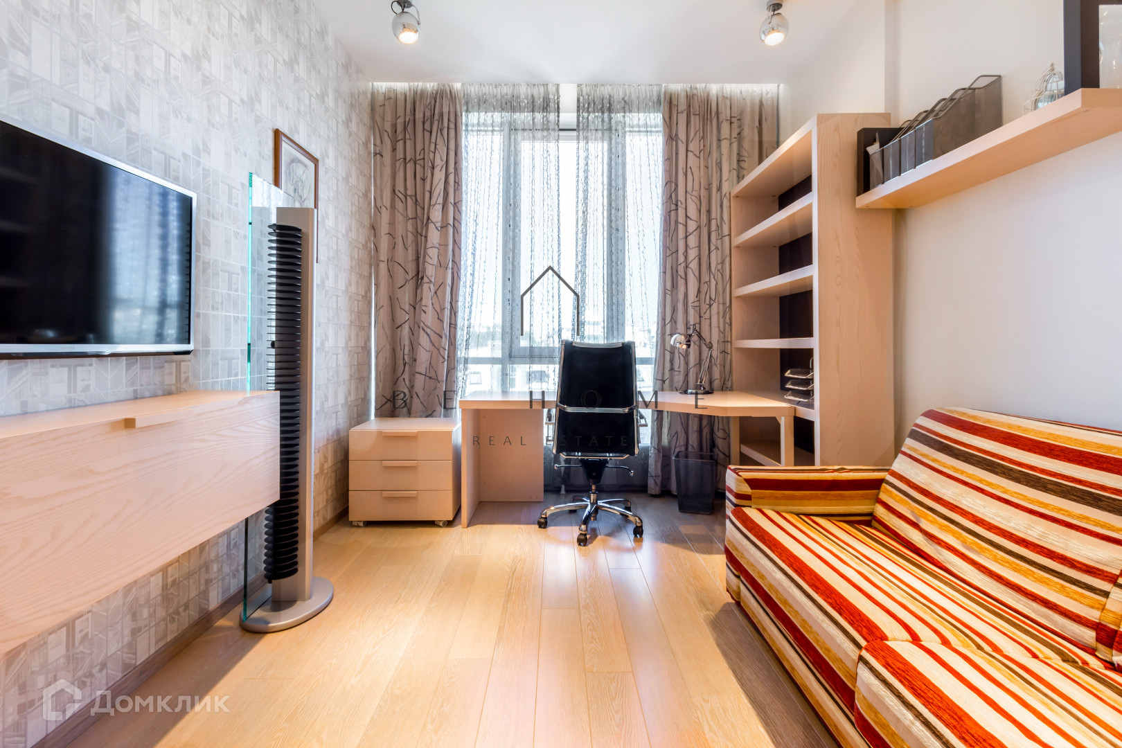 Просторная кухня-гостиная, спальня с гардеробной,  и ещё одна комната которую можно использовать как кабинет. В квартире большие окна.