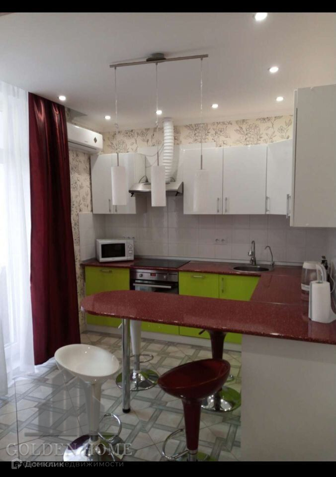 Квартира полностью меблирована и оснащена всей необходимой техникой: холодильником, стиральной и посудомоечной машинами, вытяжкой, кондиционером, телевизором, кухонной мебелью и так далее.