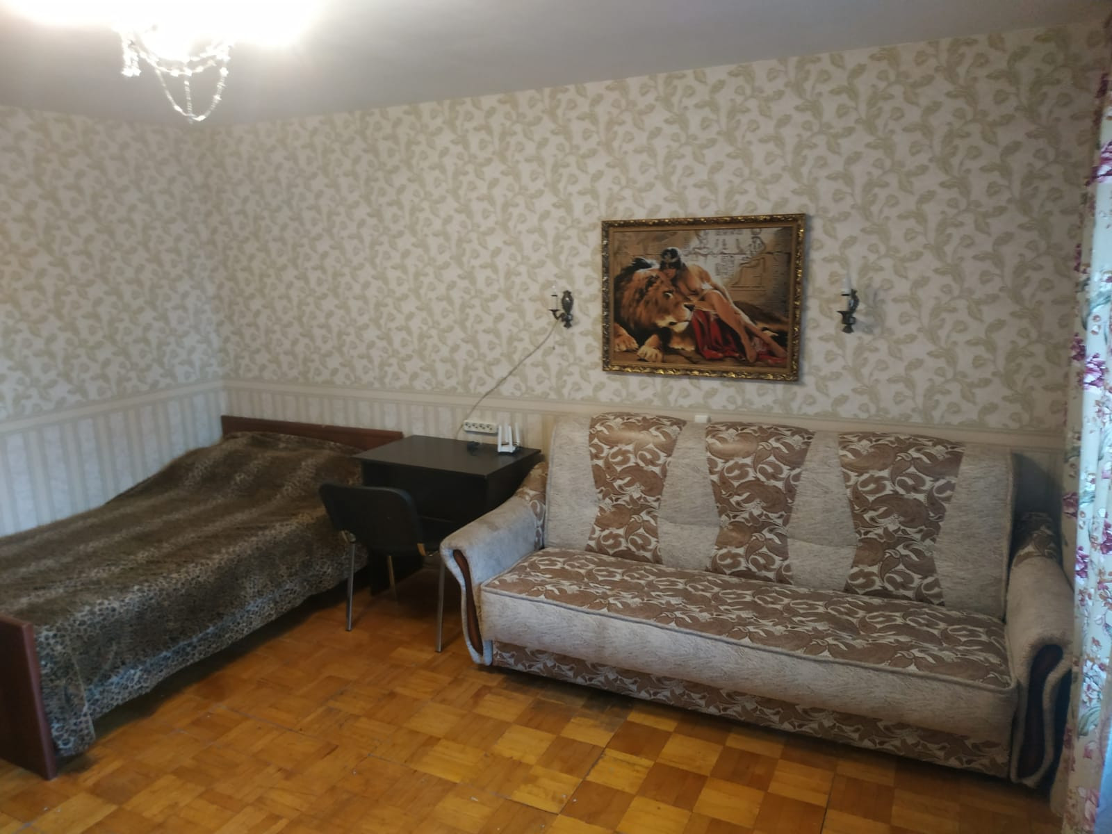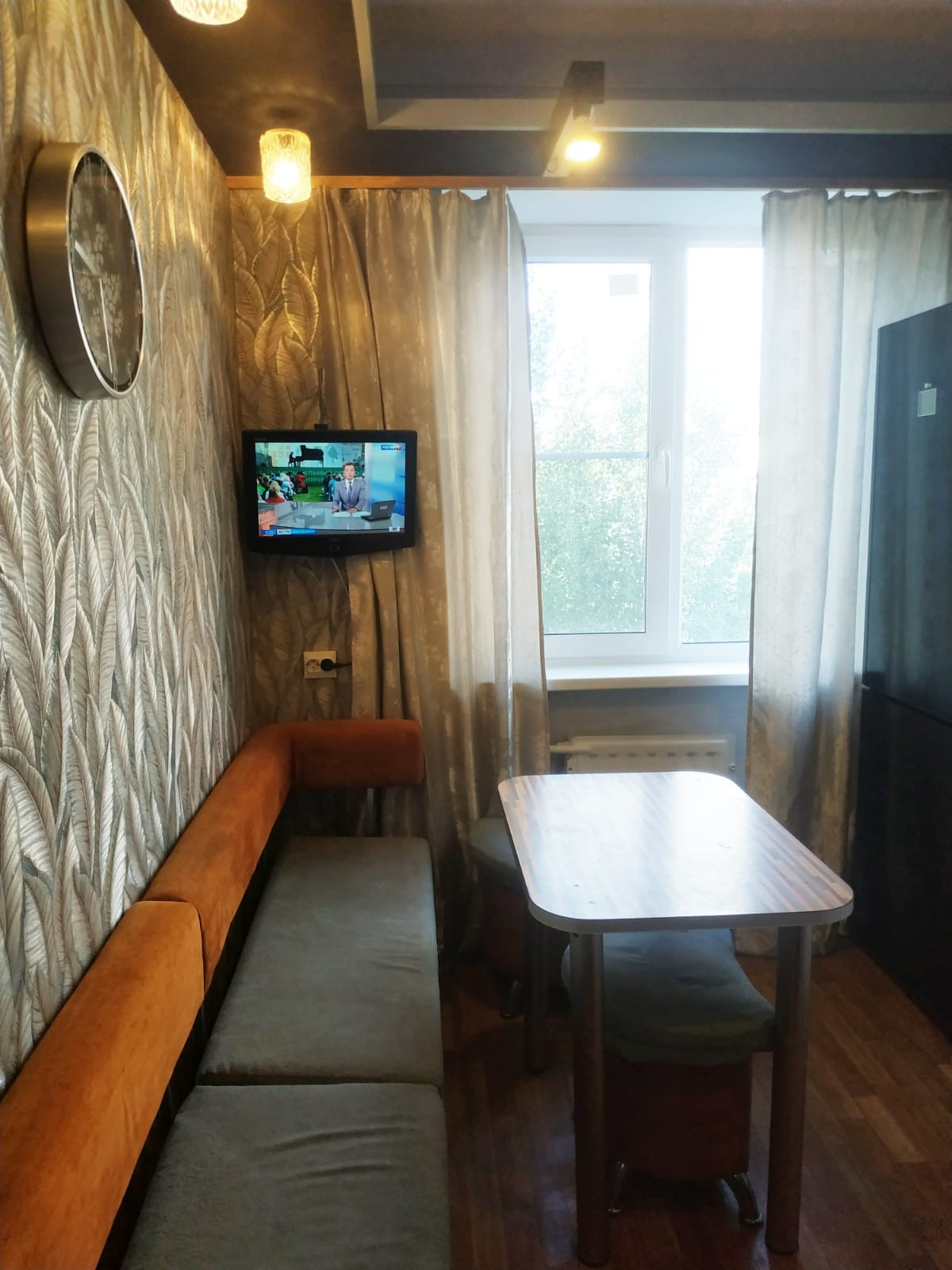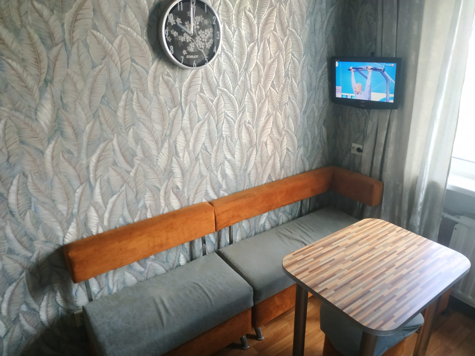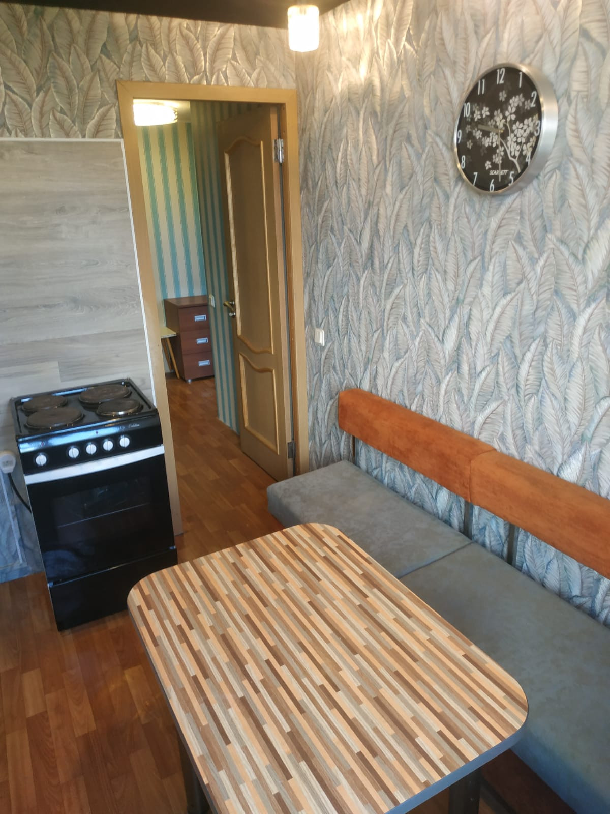На просторной кухне новый кухонный гарнитур  с эл чайником , СВЧ  и некоторой посудой. Можно  с послушной кошечкой.  Только для славян, желательно  не более 2х человек.